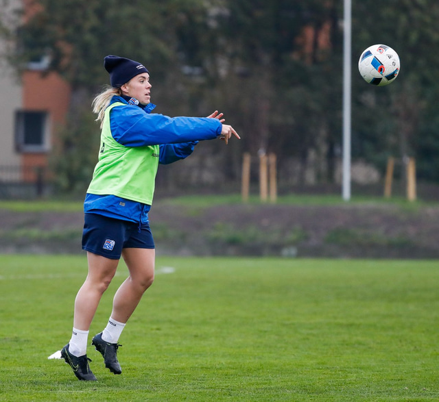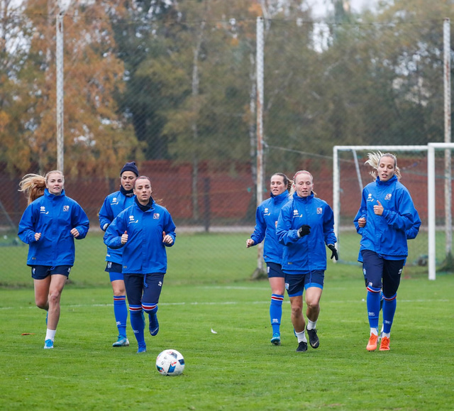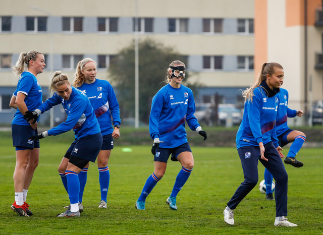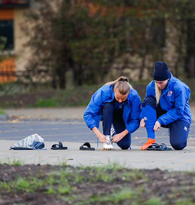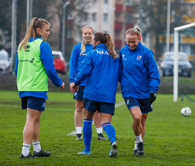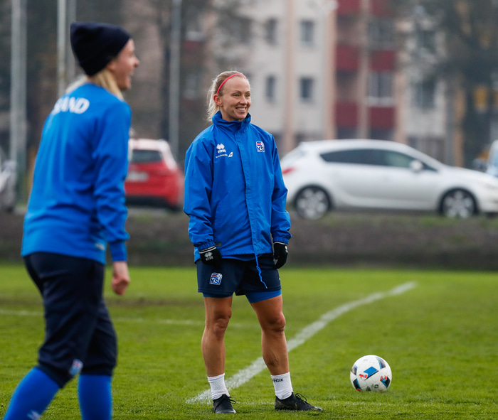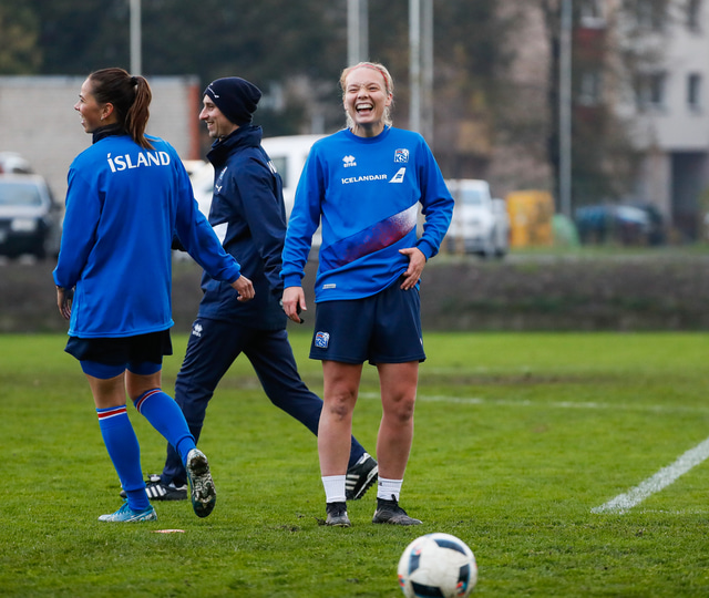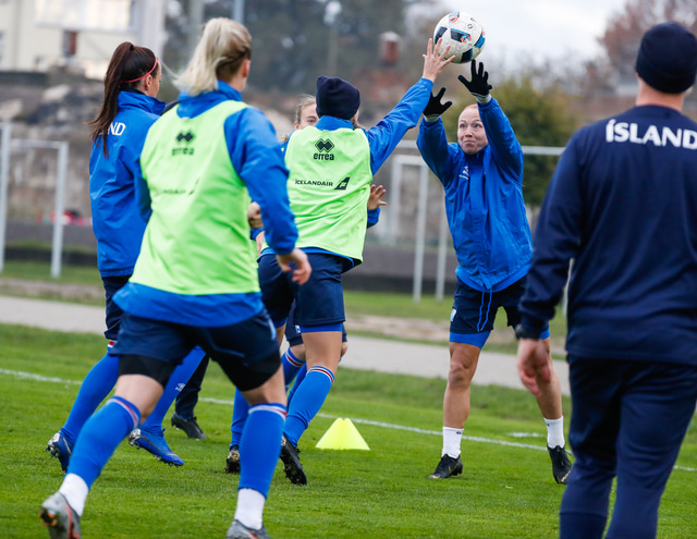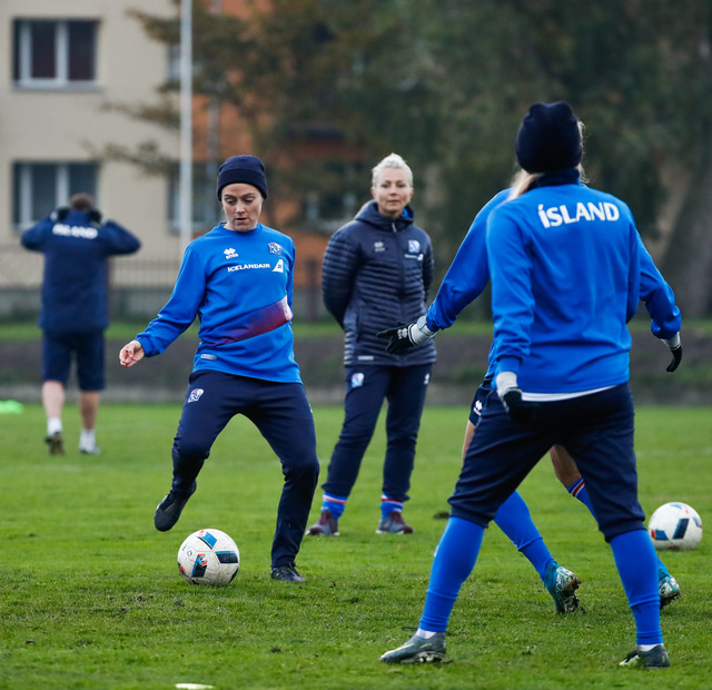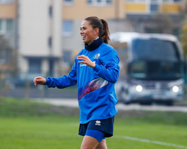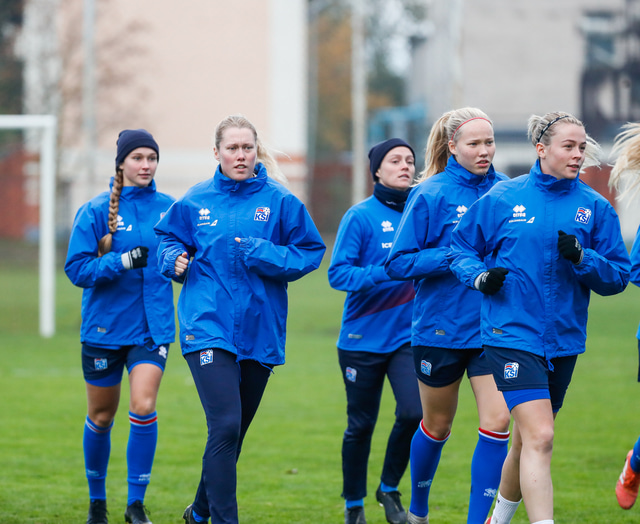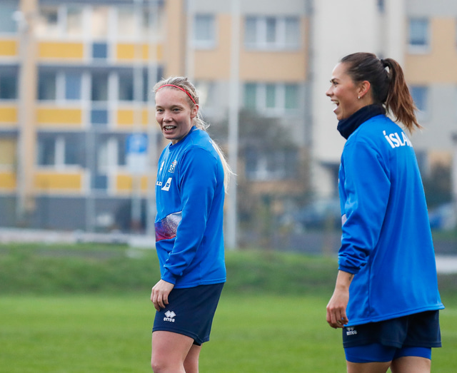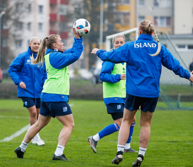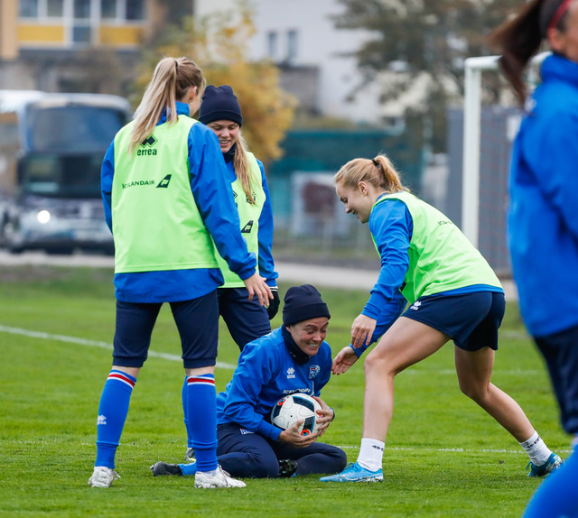 Kvennalandslið Íslands mætir Lettlandi í undankeppni EM 2021 í dag en leikið er ytra. Ekki var hægt að æfa á keppnisvellinum, Daugava leikvangnum í Liepaja í gær og æfingin því færð á Ólympíuleikvanginn sem er þar skammt frá. Hér að neðan er fjöldi mynda frá æfingunni.
