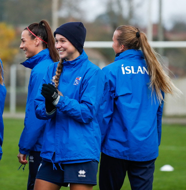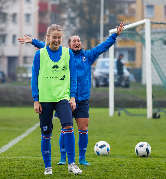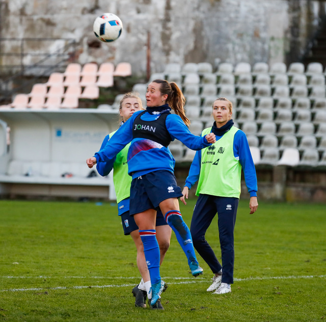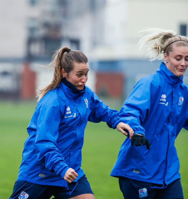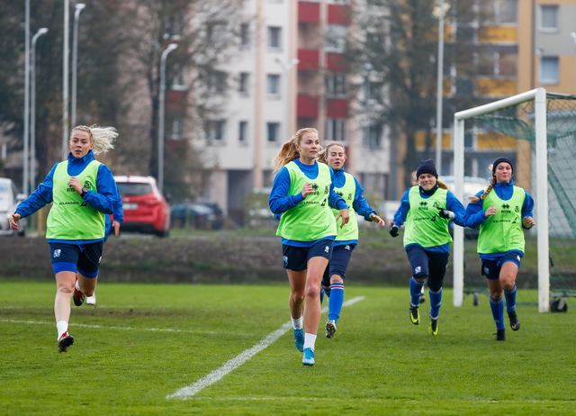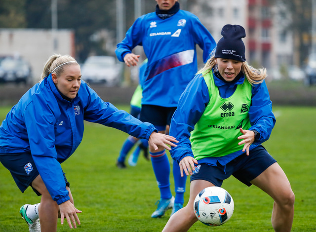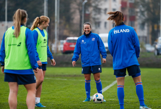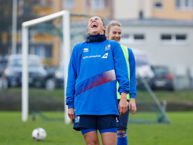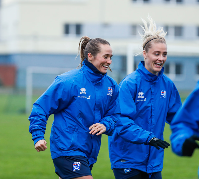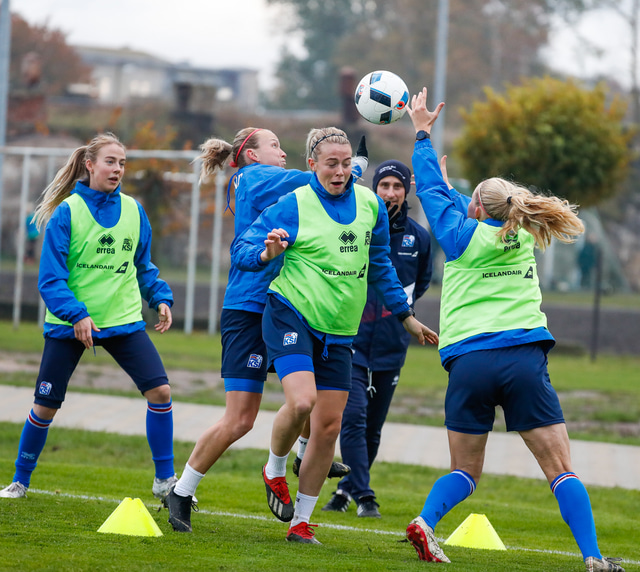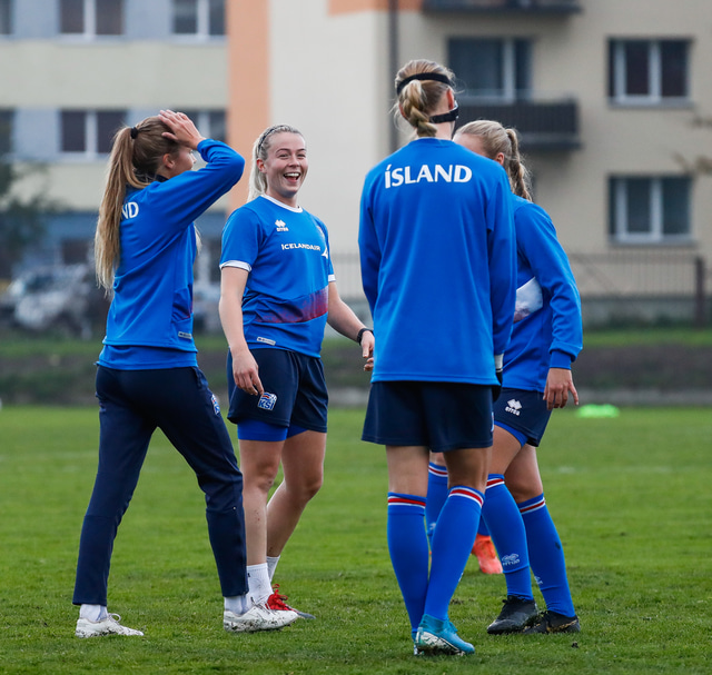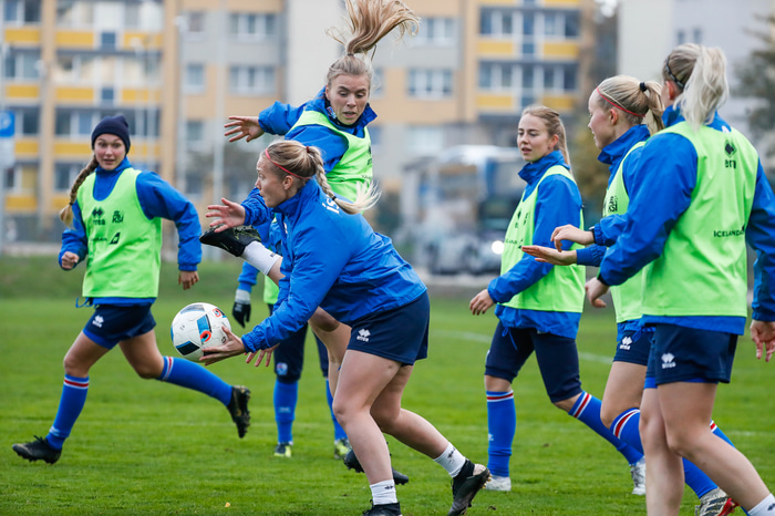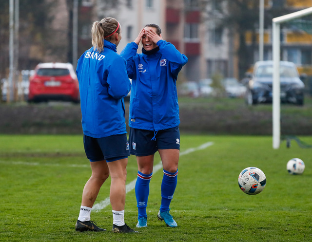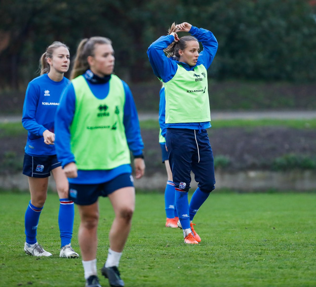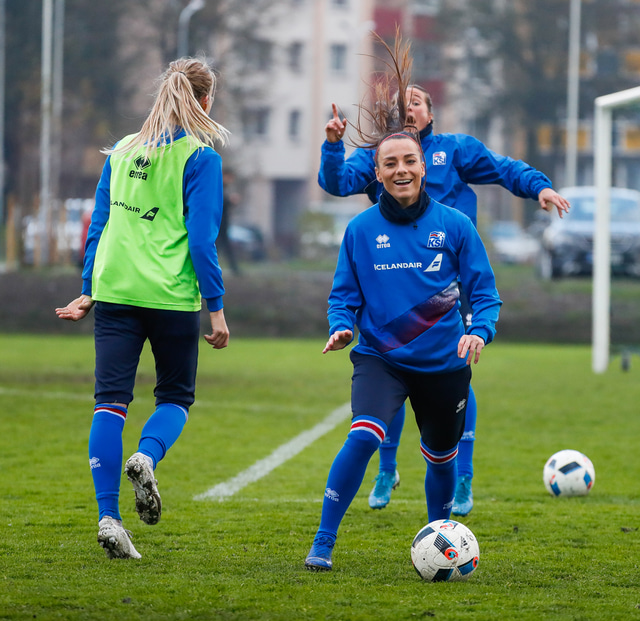 Kvennalandslið Íslands mætir Lettlandi í undankeppni EM 2021 í dag en leikið er ytra. Ekki var hægt að æfa á keppnisvellinum, Daugava leikvangnum í Liepaja í gær og æfingin því færð á Ólympíuleikvanginn sem er þar skammt frá. Hér að neðan er fjöldi mynda frá æfingunni.
