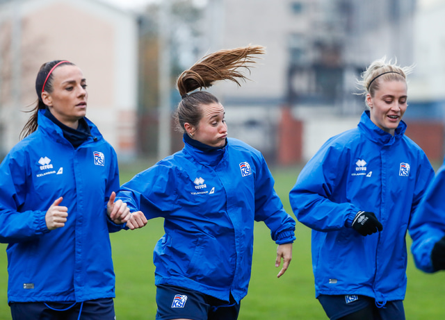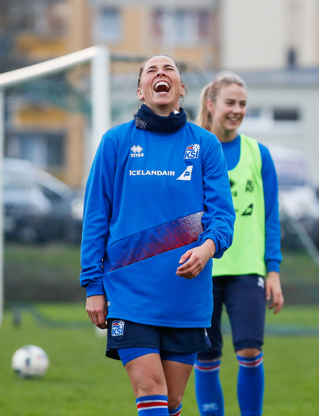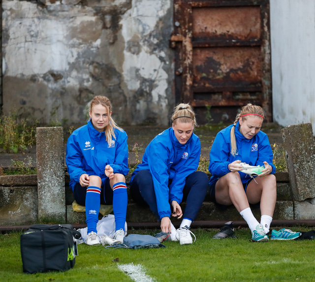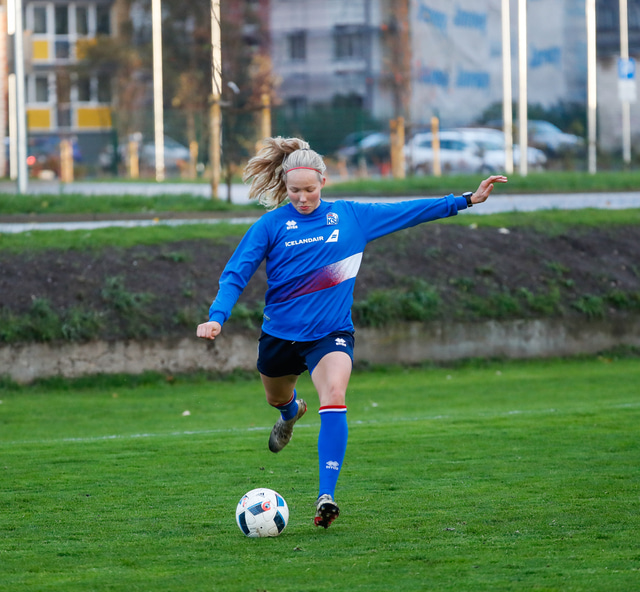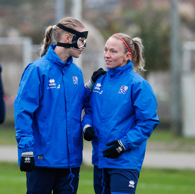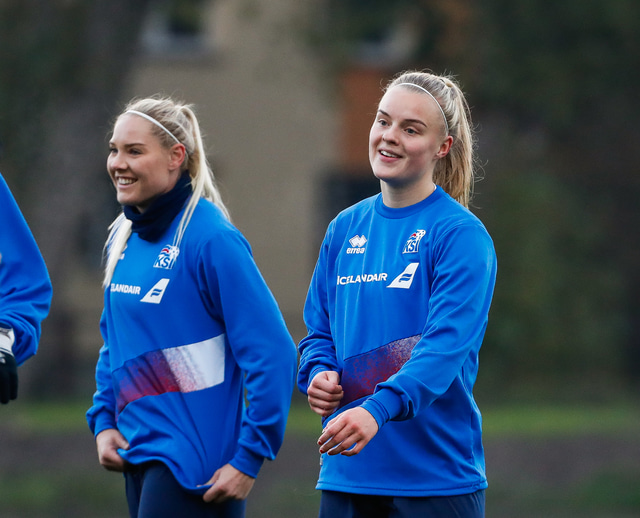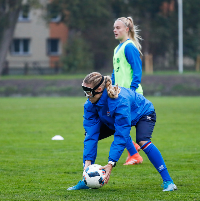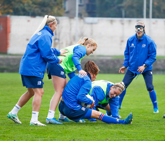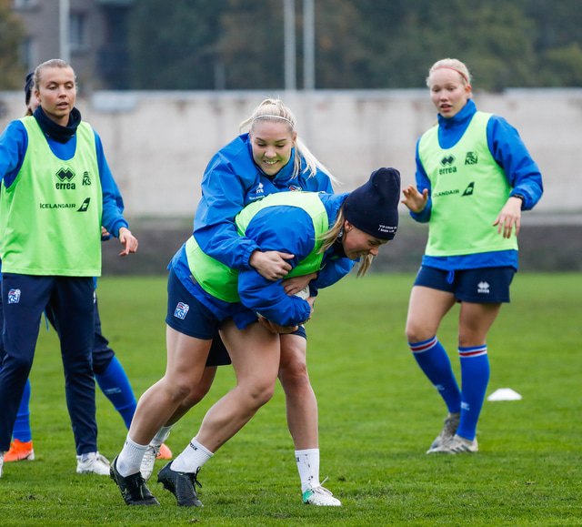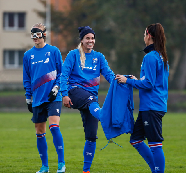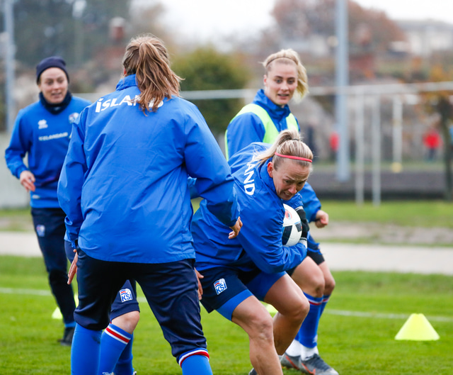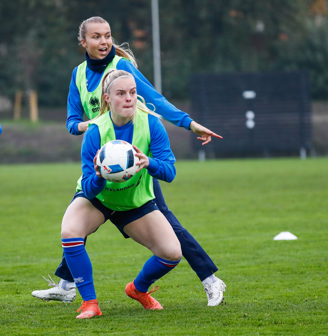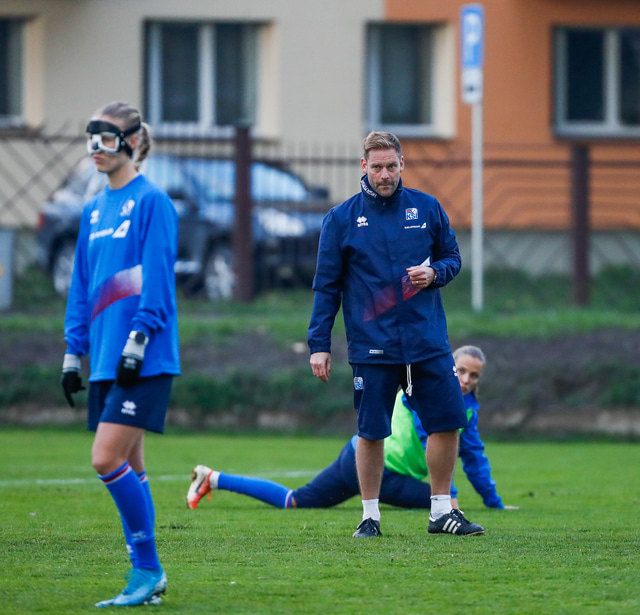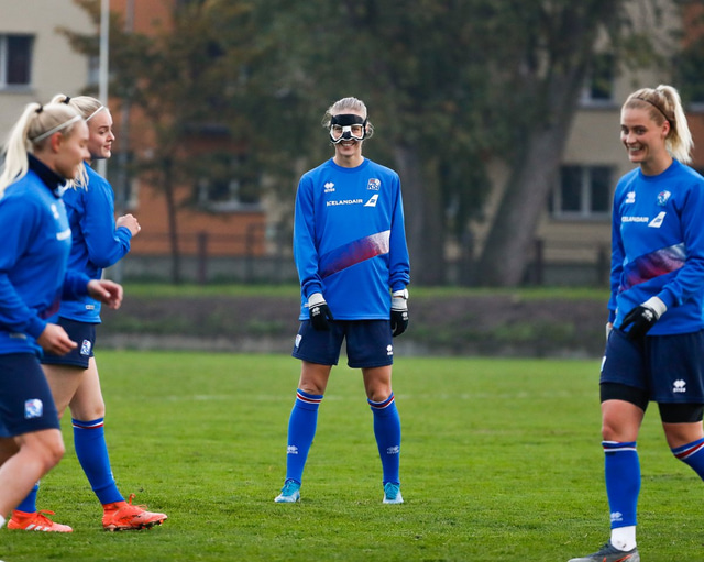 Kvennalandslið Íslands mætir Lettlandi í undankeppni EM 2021 í dag en leikið er ytra. Ekki var hægt að æfa á keppnisvellinum, Daugava leikvangnum í Liepaja í gær og æfingin því færð á Ólympíuleikvanginn sem er þar skammt frá. Hér að neðan er fjöldi mynda frá æfingunni.