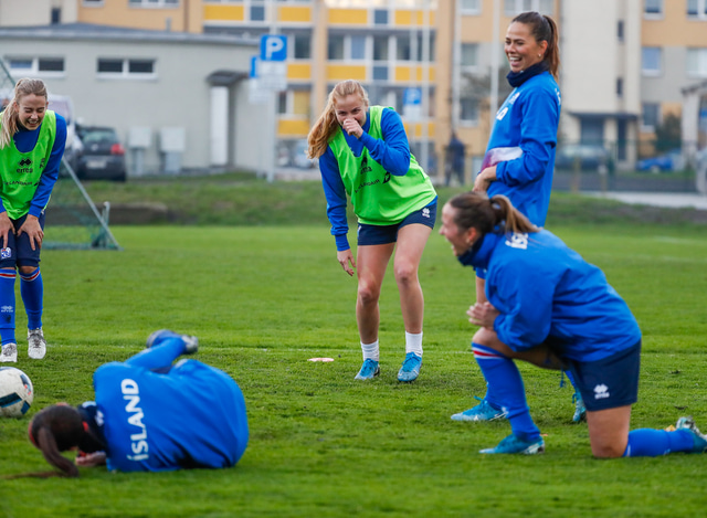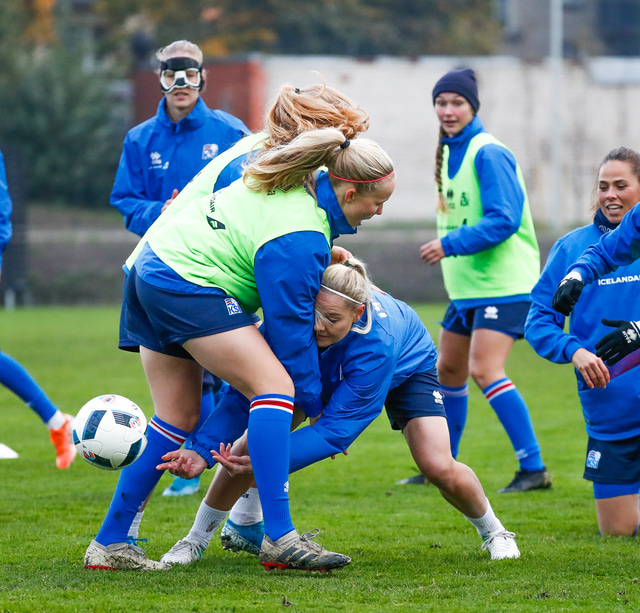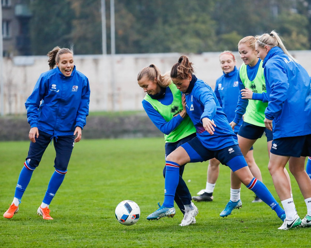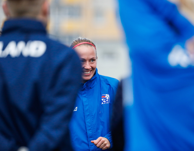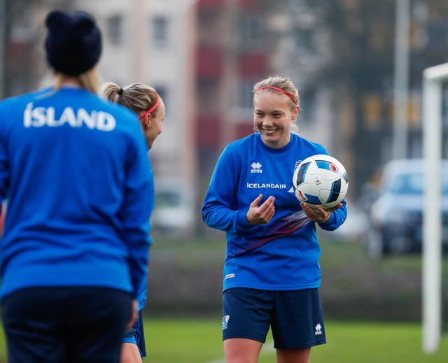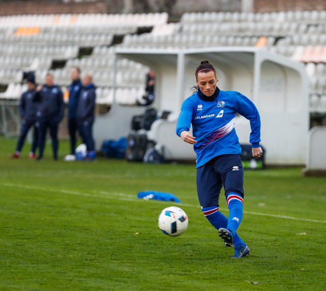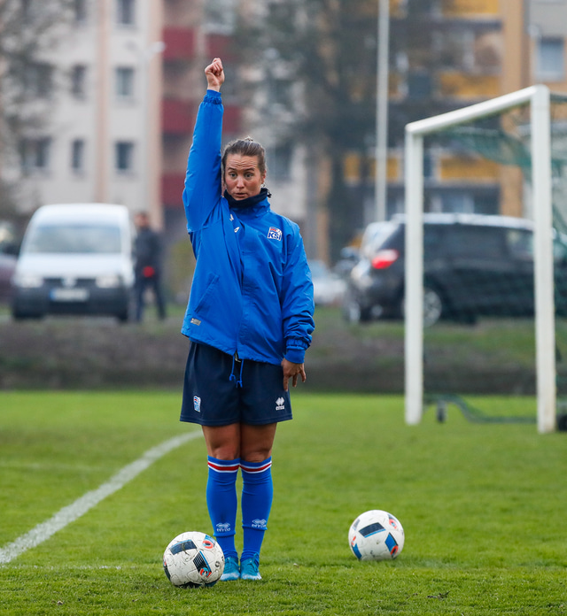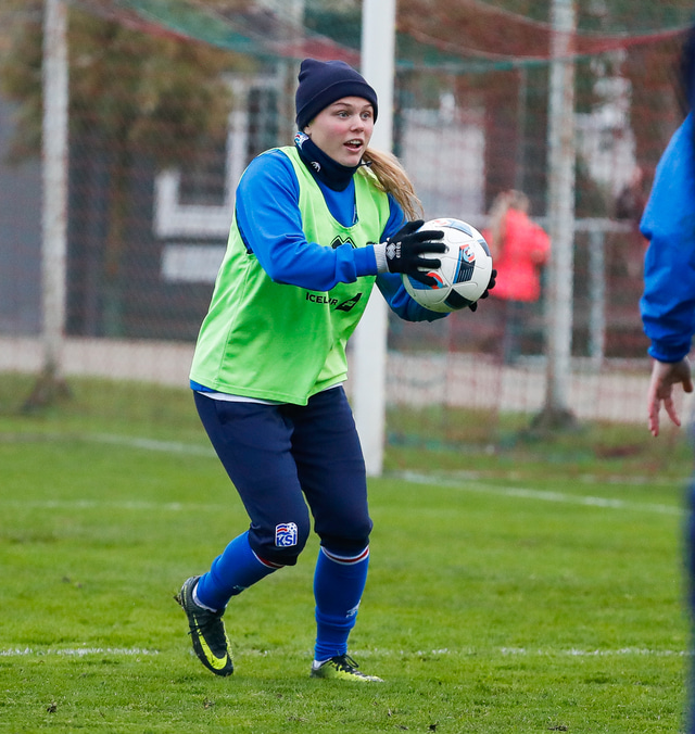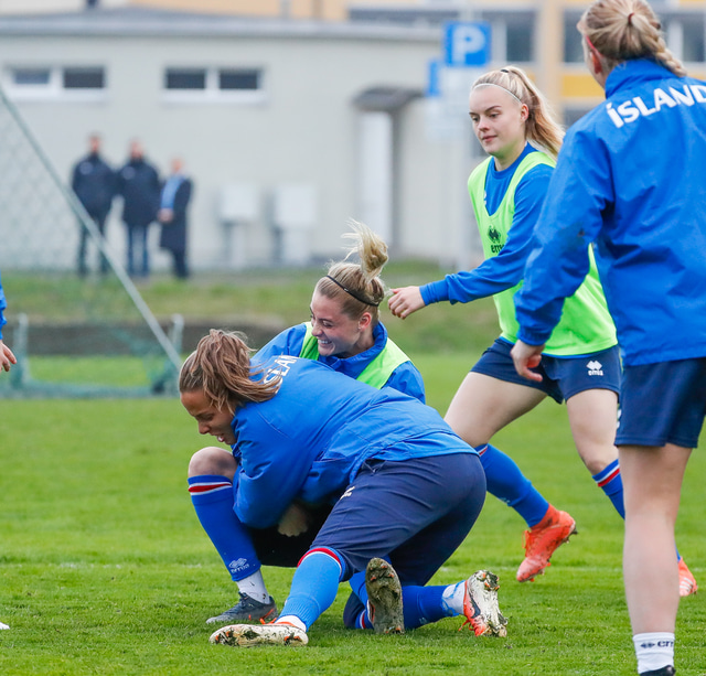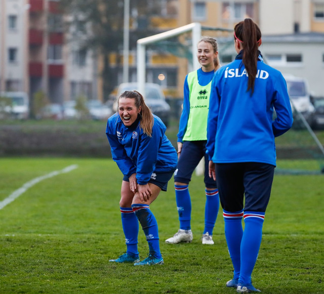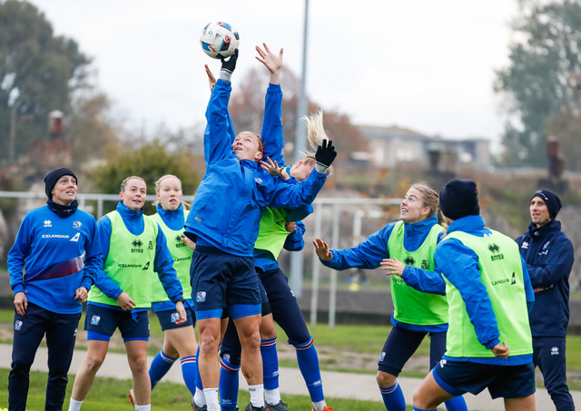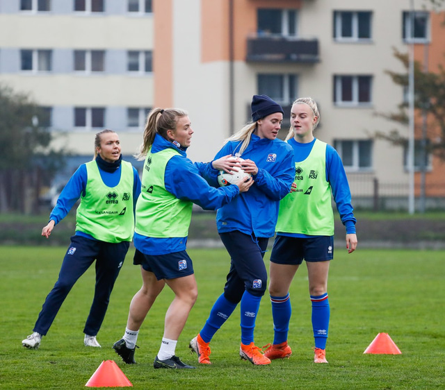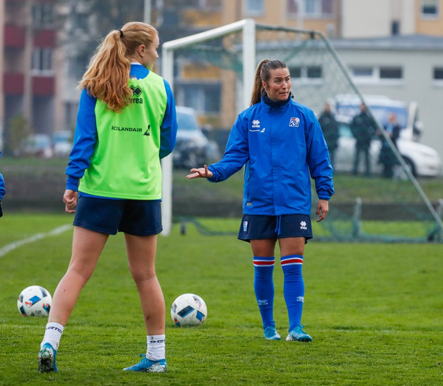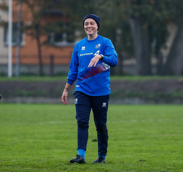 Kvennalandslið Íslands mætir Lettlandi í undankeppni EM 2021 í dag en leikið er ytra. Ekki var hægt að æfa á keppnisvellinum, Daugava leikvangnum í Liepaja í gær og æfingin því færð á Ólympíuleikvanginn sem er þar skammt frá. Hér að neðan er fjöldi mynda frá æfingunni.