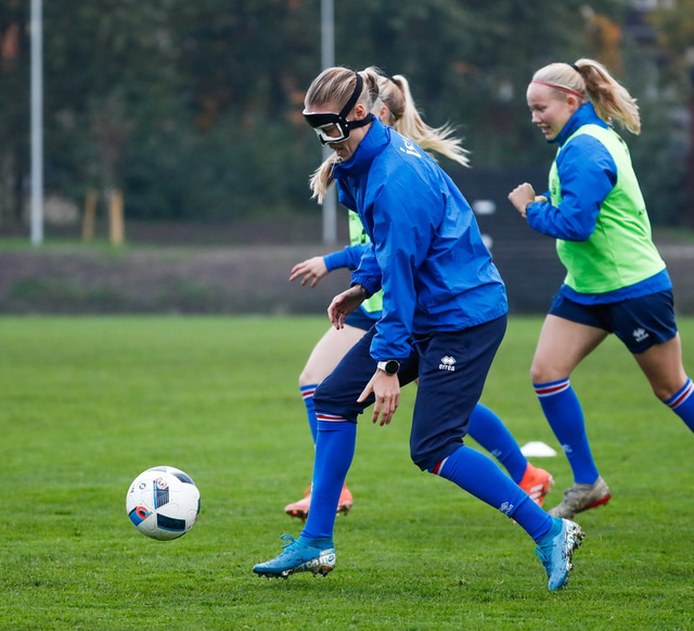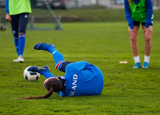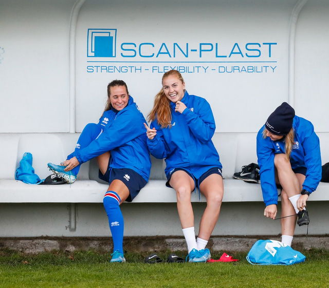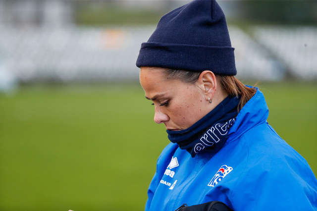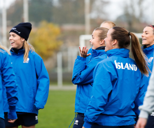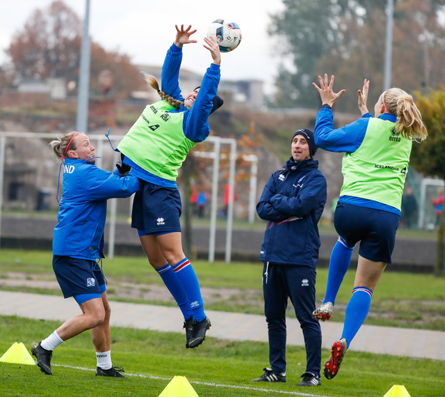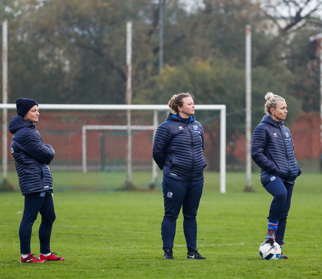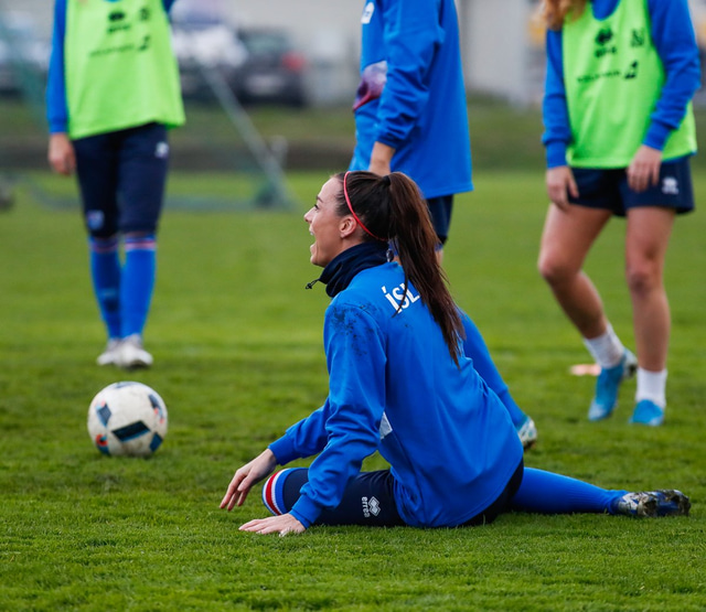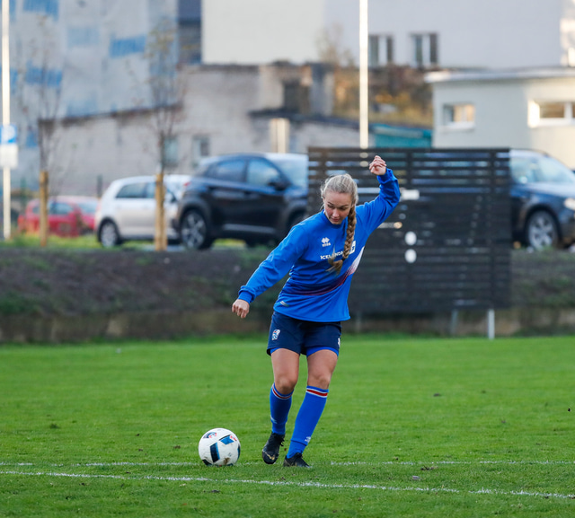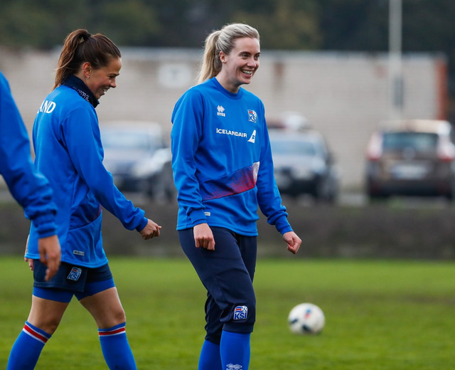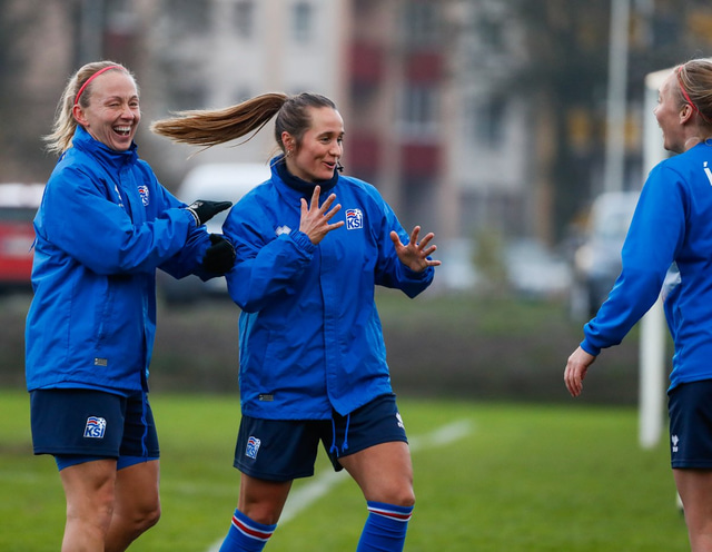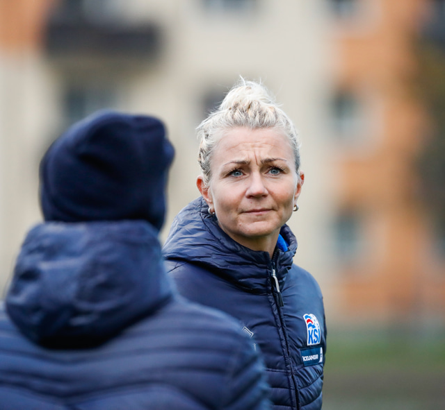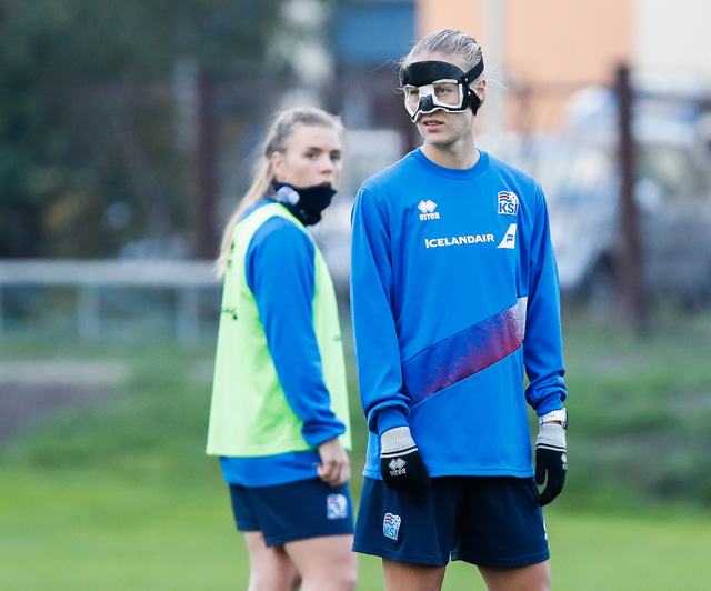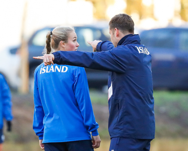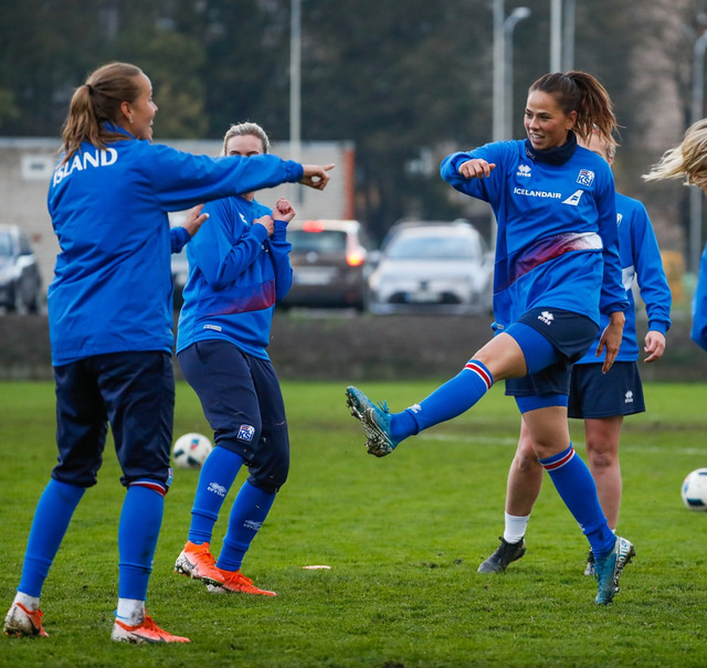 Kvennalandslið Íslands mætir Lettlandi í undankeppni EM 2021 í dag en leikið er ytra. Ekki var hægt að æfa á keppnisvellinum, Daugava leikvangnum í Liepaja í gær og æfingin því færð á Ólympíuleikvanginn sem er þar skammt frá. Hér að neðan er fjöldi mynda frá æfingunni.