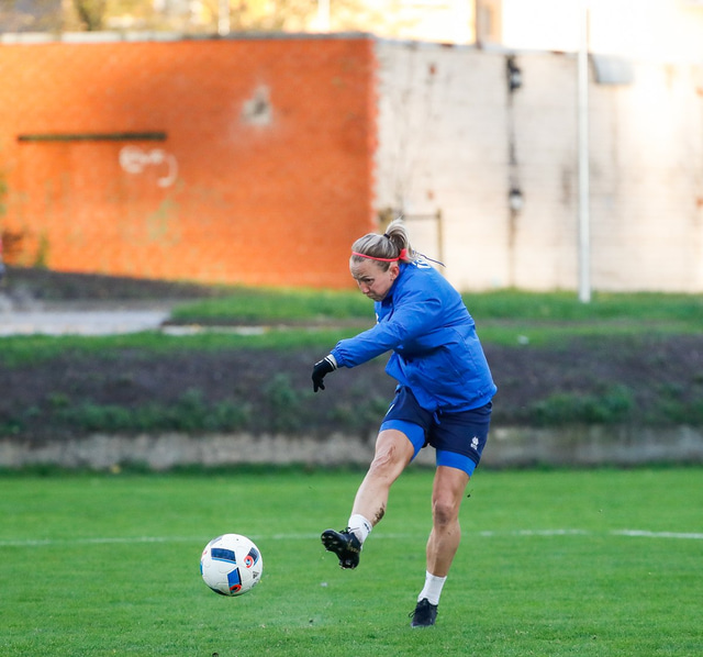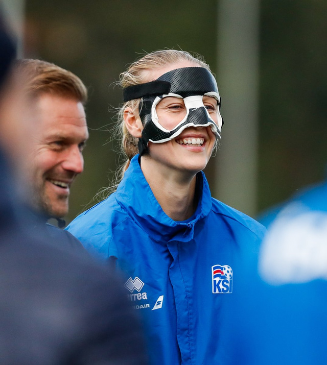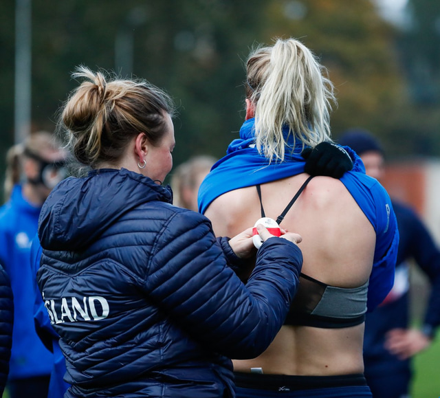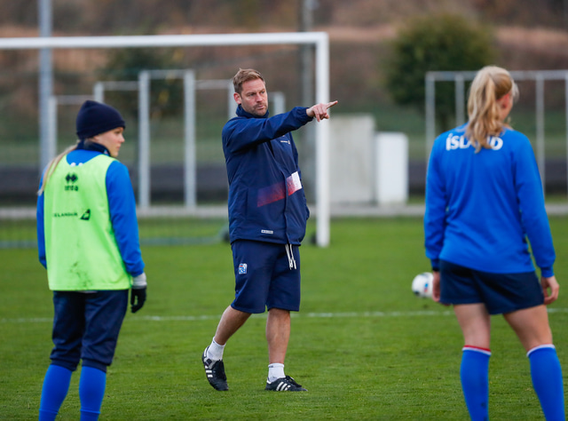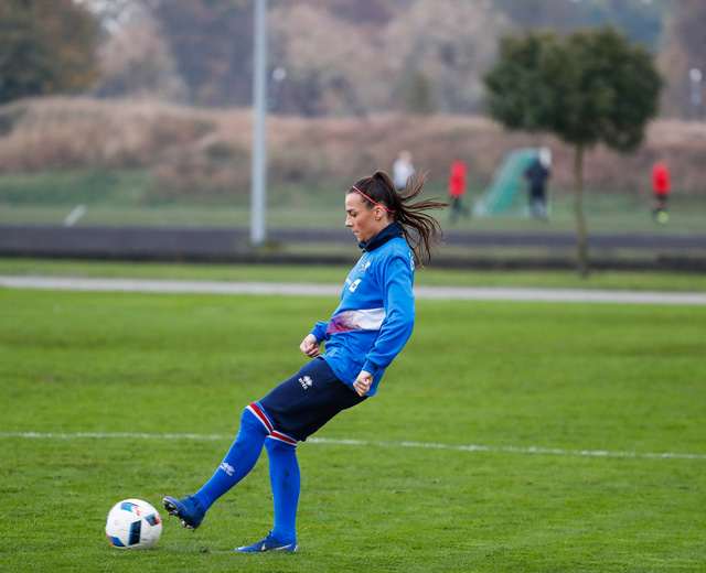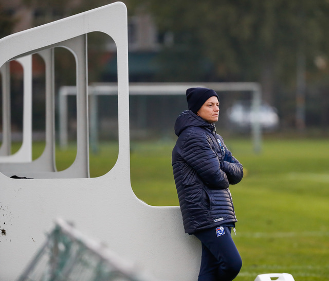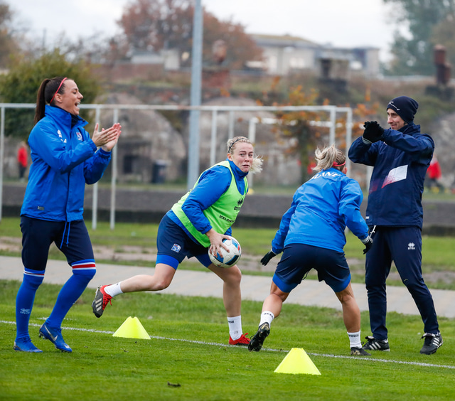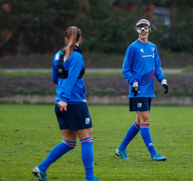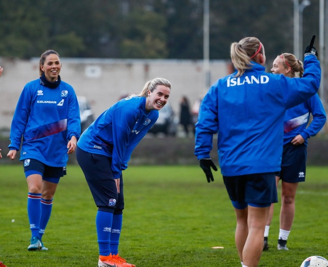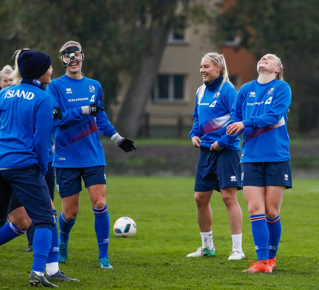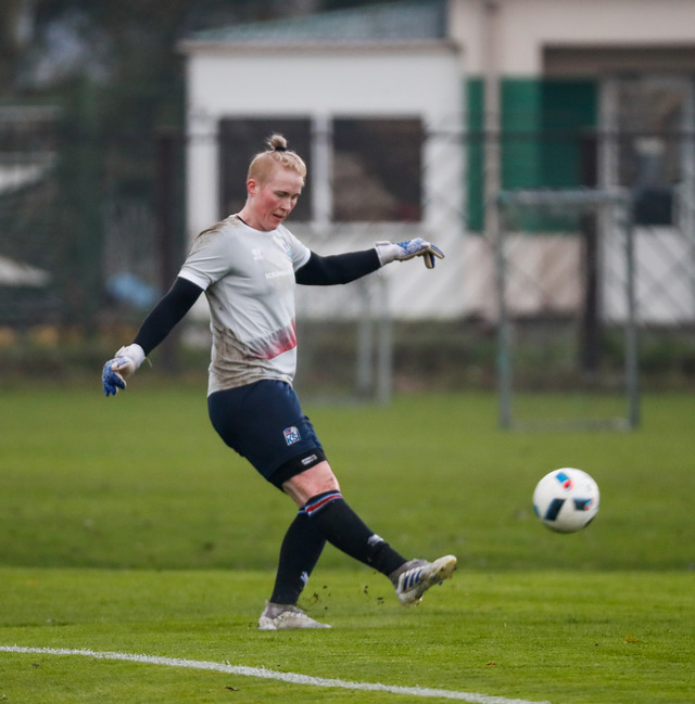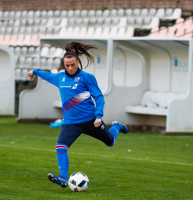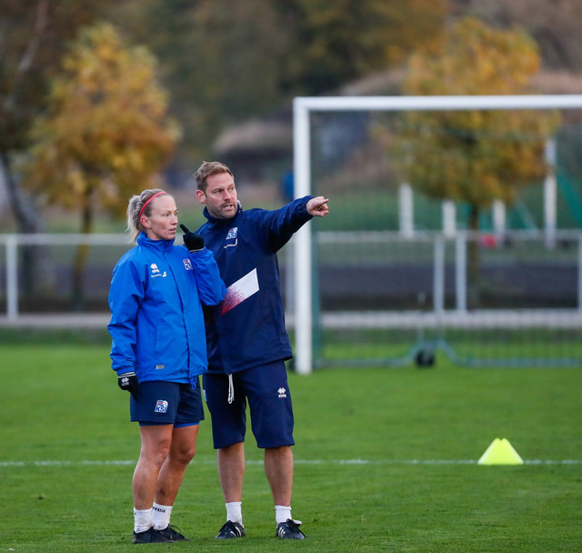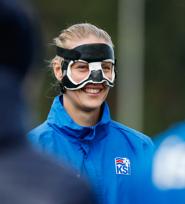Kvennalandslið Íslands mætir Lettlandi í undankeppni EM 2021 í dag en leikið er ytra. Ekki var hægt að æfa á keppnisvellinum, Daugava leikvangnum í Liepaja í gær og æfingin því færð á Ólympíuleikvanginn sem er þar skammt frá. Hér að neðan er fjöldi mynda frá æfingunni.