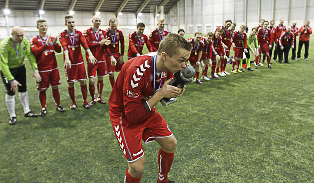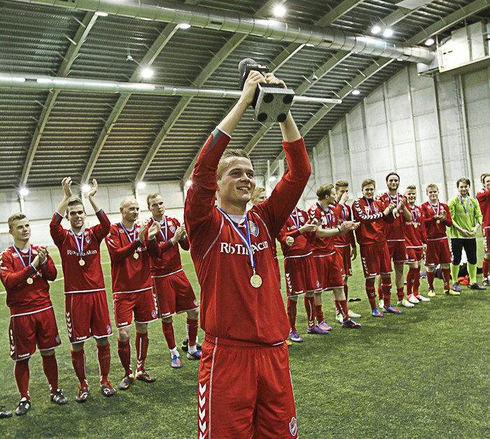 Haukar unnu B-deild Fótbolta.net mótsins eftir sigur á Gróttu í úrslitaleik í Kórnum í Kópavogi í kvöld.