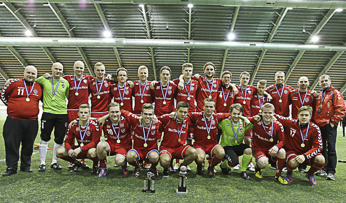 Að leiknum loknum fengu Haukar afhent sigurlaunin í mótinu, farandbikar, eignarbikar og gull verðlaunapeninga. Gróttumenn fengu silfur.