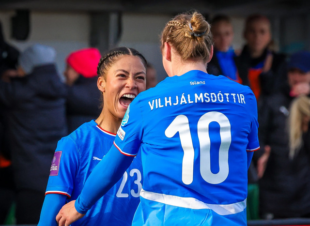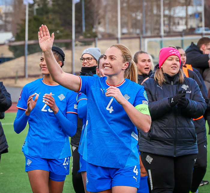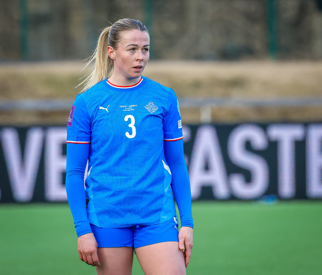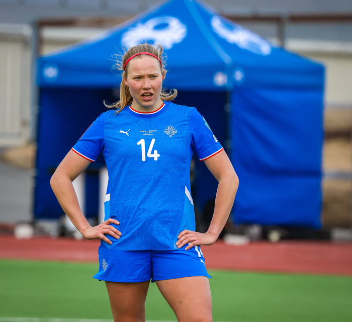 „Mér finnst búningurinn geggjaður og ég skil ekki alveg fólk sem hefur verið að setja út á hann. Mér finnst hann ógeðslega flottur. Það var geggjað að spila í honum í dag og að fá sigur," sagði Glódís eftir sigurinn á Póllandi.