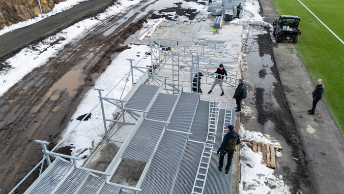 Þórsarar eru komnir með nýjan gervigrasvöll á félagssvæði sínu í Glerárhverfi á Akureyri. Það er komið gervigras á völlinn, hiti undir völlinn, flóðlýsing og von er á vallarklukkunni eftir rúma viku. Það er hins vegar ekki búið að ganga frá umhverfinu og því er ekki hægt að segja að völlurinn sé orðinn boðlegur fyrir leik í Bestu deildinni.