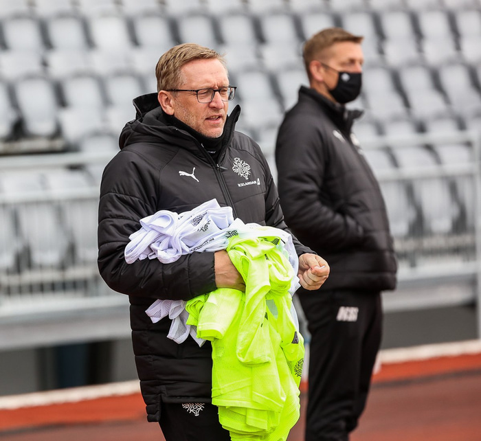 Ísland mætir Írlandi í vináttulandsleikjum á Laugardalsvelli á föstudag og þriðjudag. Liðið æfði í gær morgun og þar tókum við þessar myndir.