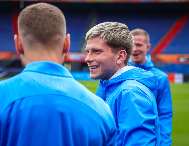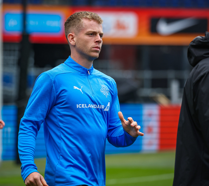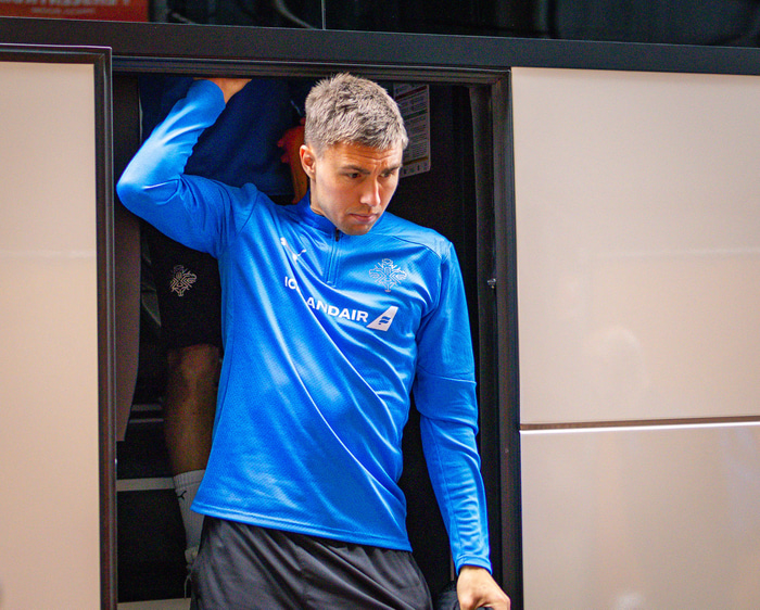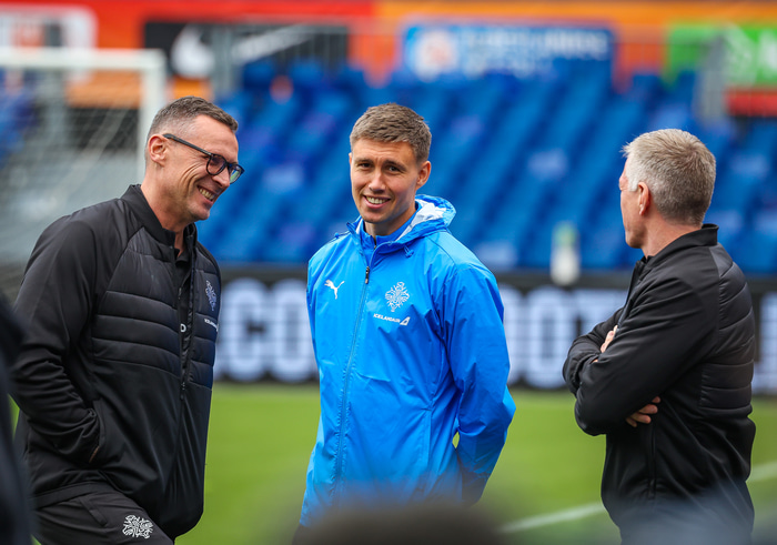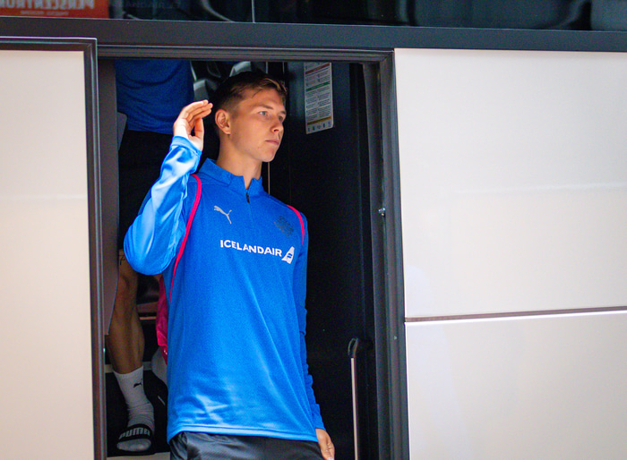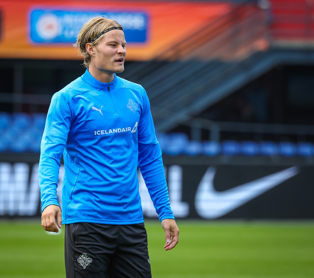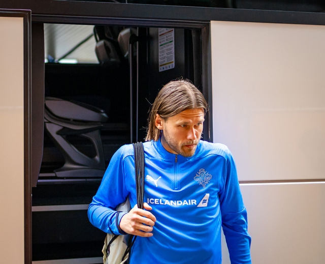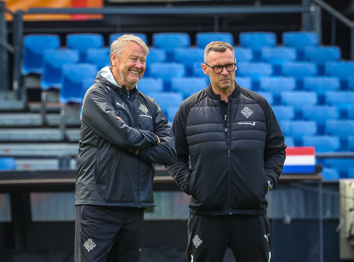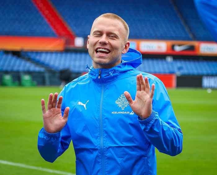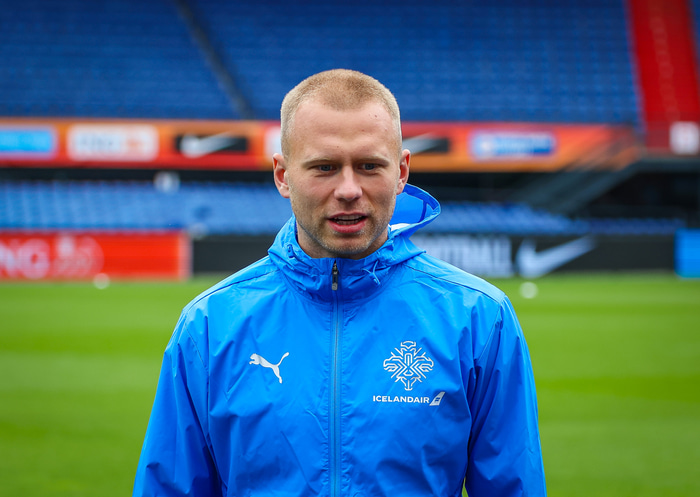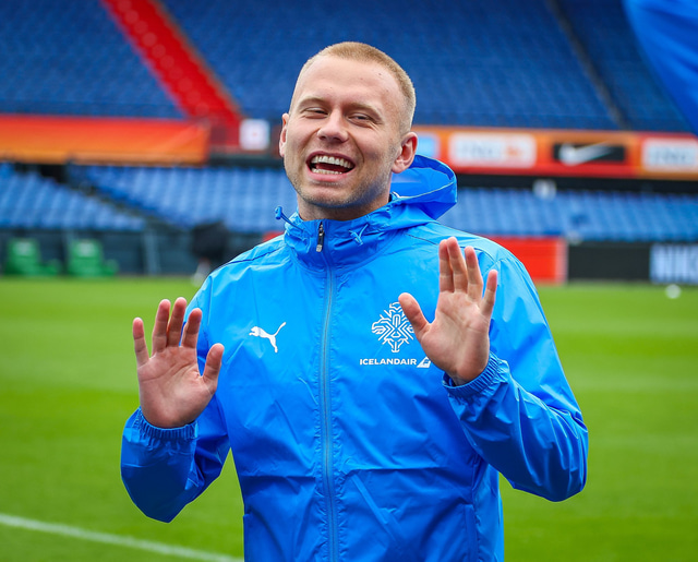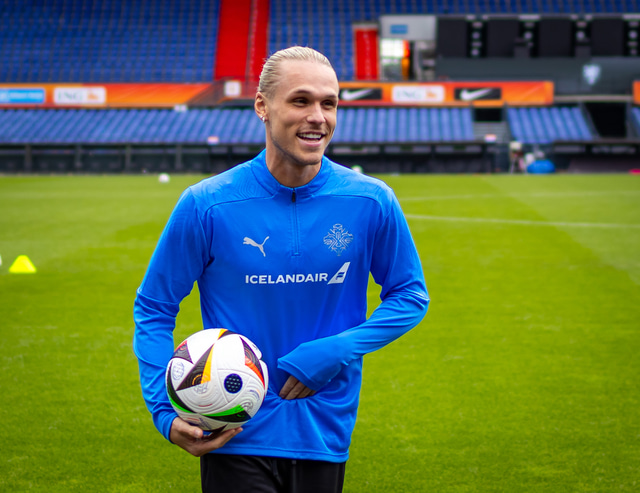 Íslenska landsliðið er í þessum skrifuðu orðum að æfa á De Kuip leikvangnum í Rotterdam þar sem leikið verður gegn Hollandi á morgun.
