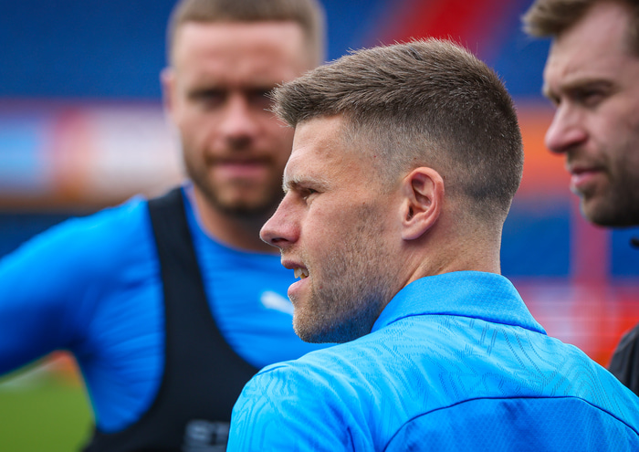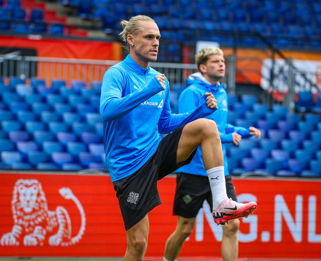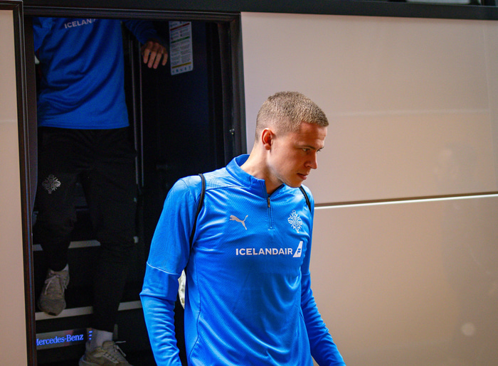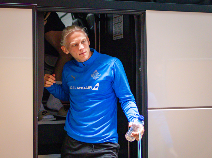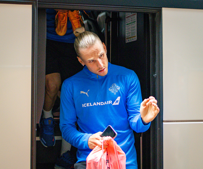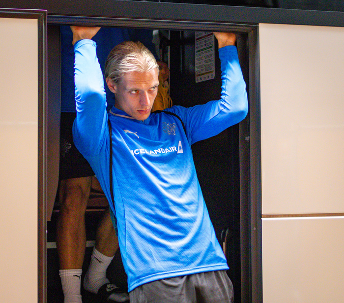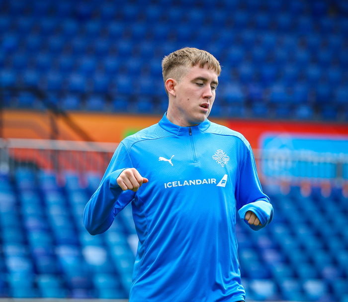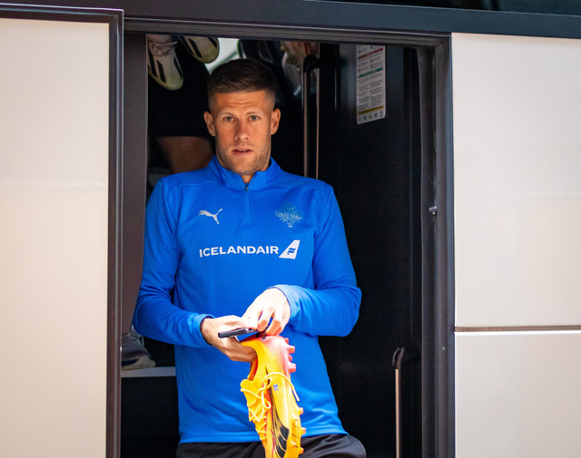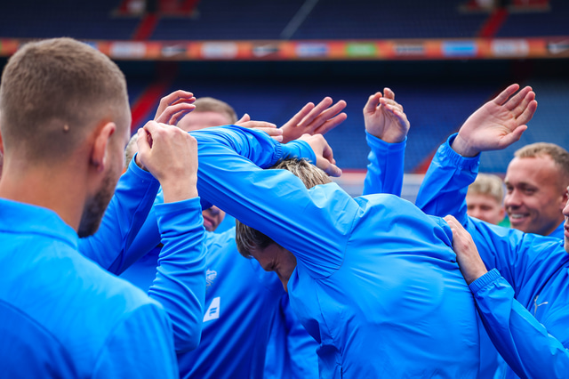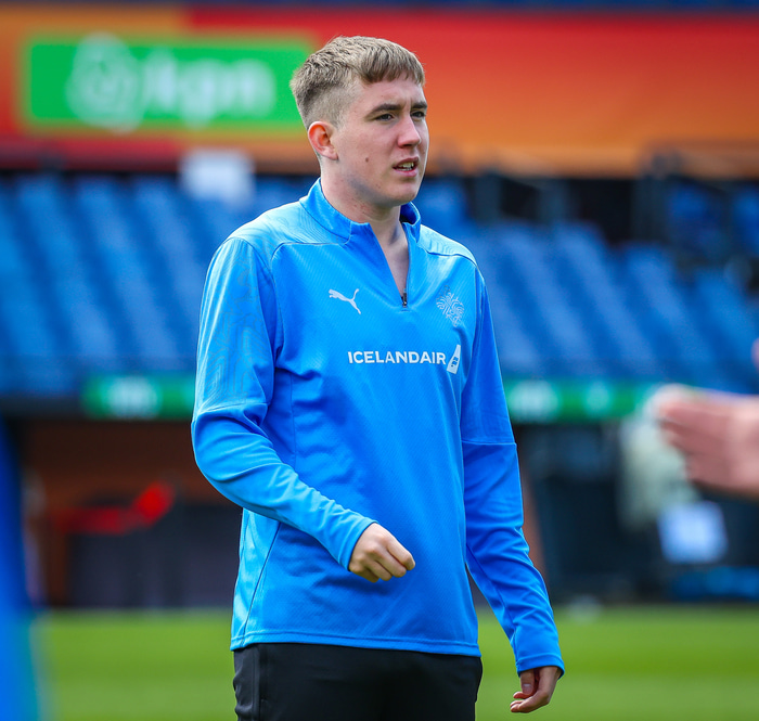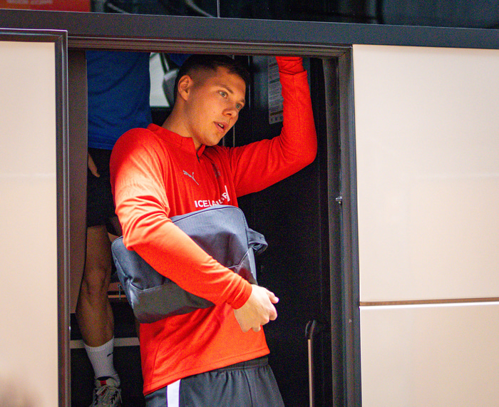Íslenska landsliðið er í þessum skrifuðu orðum að æfa á De Kuip leikvangnum í Rotterdam þar sem leikið verður gegn Hollandi á morgun.