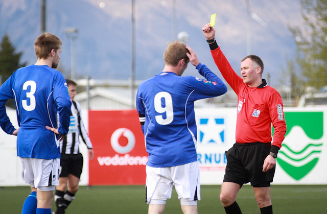Magnús hefur það ekki sér til afsökunar að hafa verið langt frá atvikinu því aðstoðardómarinn var í innan við þriggja metra fjarlægð frá því sem gerðist. Hafi aðstoðardómarinn átt þátt í þessari ákvörðun er skömm hans jafnvel enn meiri en Magnúsar. Ef ekki - gerir það mistök Magnúsar enn verri að hafa ekki leitað ráða hjá aðstoðardómaranum. Rétt niðurstaða dómarans hefði verið að veita báðum leikmönnum tiltal eða sýna báðum gula spjaldið. Öðrum fyrir að bera fyrir sig hendur og hinum fyrir hlægilegan leikaraskap.