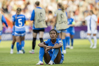 „Þetta er eitthvað sem liðið þarf að gera. Þú getur ekki bara sagt að þú sért með frábæran leikmann, láta hana bara um þetta, dúndra í áttina til hennar og vona það besta. Þú þarft að koma liðinu sem er í kringum hana í stöðu sem er hættulegust fyrir Sveindísi. Sama með Karólínu, ef hún er að fá boltann á miðjuhringnum með bakið í markið hinum megin þá er hún ekki að fara að snúa þrjár af sér, snúa í átt að marki, bruna og finna einhverja gullsendingu þannig. Hún þarf að fá að finna sér svæði og fá boltann í þau svæði. Þá getur hún töfrað eitthvað. Liðið þarf allt að smella svo þessir stjörnuleikmenn sem eru markahættulegastar fái boltann í stöðum sem eru bestar fyrir þær. Það hefur okkur algjörlega ekki tekist að gera á þessu móti," sagði Einar.