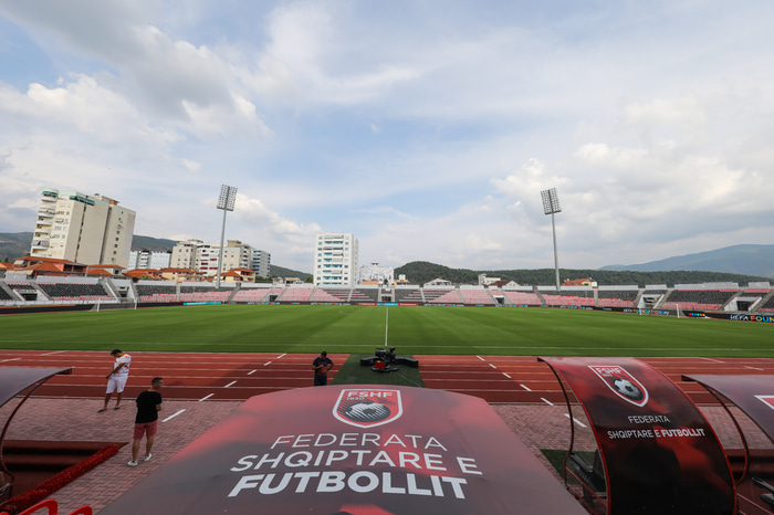 Ísland mætir Albaníu í undankeppni EM 2020 annað kvöld en leikið er ytra. Nýr og glæsilegur leikvangur Albana í höfuðborginni Tírana er ekki tilbúinn og því verður leikið á velli í Elbasan sem erum 40 mínútur suður af höfuðborginni.