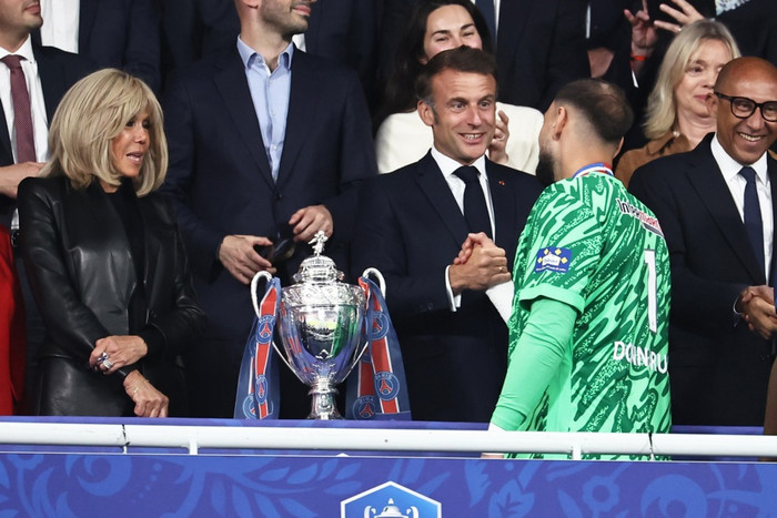 Upphafsflautið verður hins vegar ekki fyrr en þremur mínútum seinna þar sem að forseti Frakklands Emmanuel Macron er ekki mættur á völlinn. Leikurinn byrjar því ekki fyrr en um 18:48 því ekki vill forsetinn missa af upphafsflautinu.