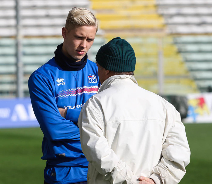 „Það er auðvitað alltaf gaman þegar svona stór lið eru að fylgjast með manni. Vonandi er eitthvað rétt í þessu," segir landsliðsmaðurinn Hörður Björgvin Magnússon um fréttir þess efnis að Everton og Tottenham hafi áhuga á að fá hann í sínar raðir.