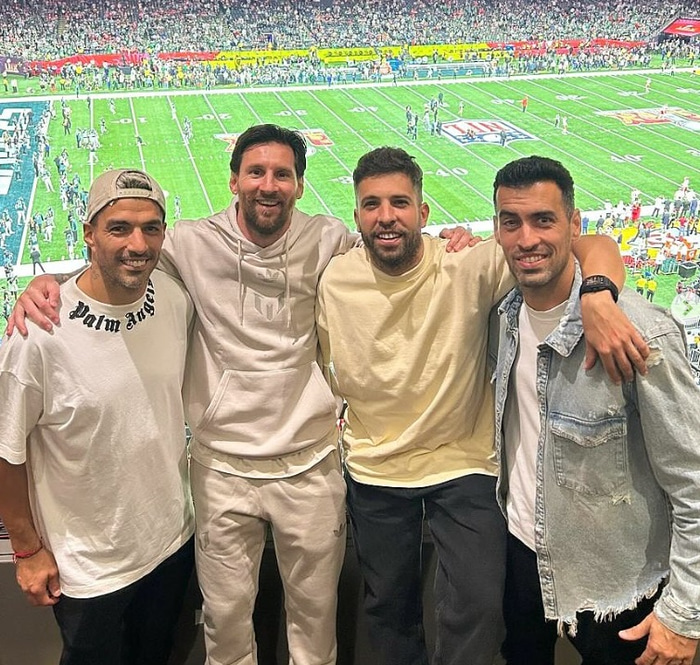 Luis Suarez, Jordi Alba og Sergio Busquets voru með honum á leiknum.
