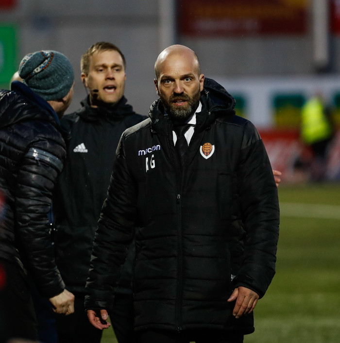 „Nei, Blikarnir voru mjög sterkir. Okkur fannst við sleppa vel með að vera 2-1 undir í hálfleik en í seinni hálfleik fannst mér við byrja mjög vel og vorum að reyna að gera eitthvað án þess þó að vera virkilega ógnandi.'' Sagði Arnar, spurður að því hvort hans menn hafi átt meira skilið úr þessum leik.