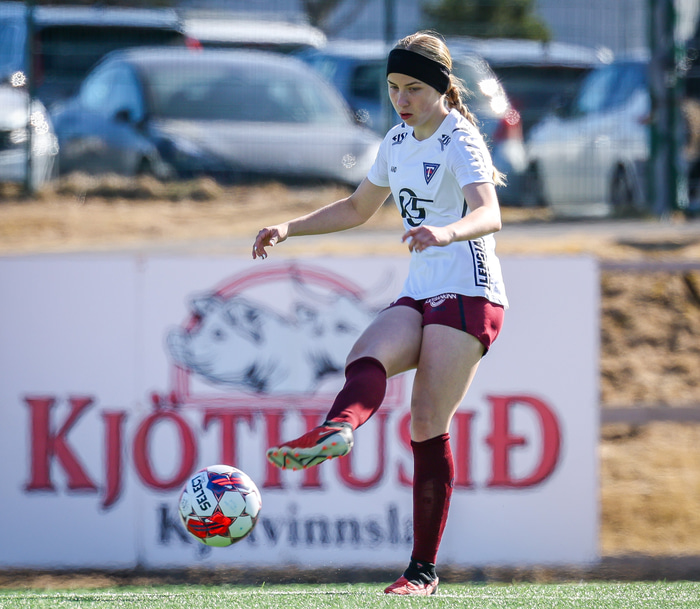 Arna Eiríksdóttir stóð vaktina vel í vörn FH þegar liðið vann dramatískan sigur gegn Þrótti og hélt Aldís Guðlaugsdóttir hreinu í markinu.