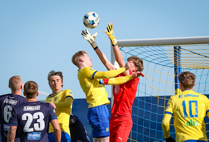 Vendipunktur leiksins var þó jöfnunarmark Grindavíkur í 2-2. Eftir langt innkast inn á teiginn berst boltinn inn á markteig þar sem Haukur Óli Jónsson markvörður Fjölnis missir boltann í baráttu við Adam Árna Róbertsson framherja Grindavíkur. Fjölnismenn voru vægast sagt ósáttir og fór Gunnar nánar yfir atvikið.