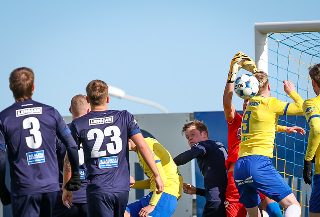 Neðst í fréttinni má sjá myndasyrpu af atvikinu umtalaða. Markið fékk að standa en Fjölnismenn vildu aukaspyrnu.