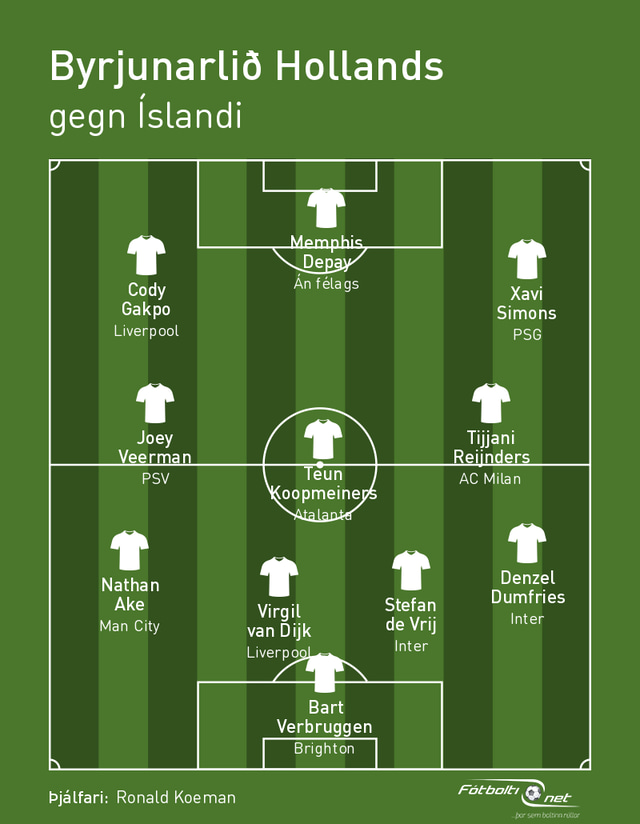 Ronald Koeman landsliðsþjálfari Hollands gerir níu breytingar á liðinu. Bart Verbruggen er áfram í markinu og Memphis Depay í fremstu línu. Leikmenn á borð við Virgil van Dijk, Nathan Ake, Cody Gakpo og Xavi Simons koma inn í liðið.