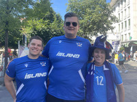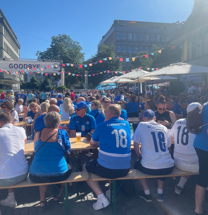 Bláa hafið tók yfir stuðningsmannasvæðið í Thun í dag og þar mátti ekki sjá eina norska treyju.