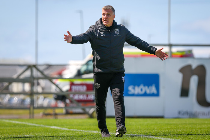 „Það eina sem ég er ósáttur við í okkar leik eru þessu þrjú mörk sem við fáum á okkur því það var svo margt sem við hefðum getað gert betur í aðdragandanum á þeim öllum. Tala nú ekki um síðasta markið þar sem við erum að flýta okkur að koma boltanum í leik. Það er jákvætt að því leytinu til að við vildum fara upp völlinn og skora sigurmarkið. Þá flýtum við okkur aðeins af stað og gefum boltann frá okkur og upp úr því skora þeir sigurmarkið. Það var óþarfi að tapa þessu, mér fannst Fram heilt yfir miklu betra fótboltalið."
