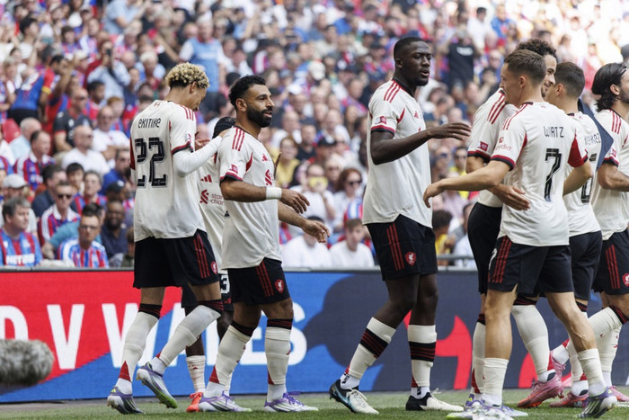Liverpool er að spila úrslitaleik við Crystal Palace um Samfélagsskjöldinn þessa stundina og tóku Englandsmeistararnir forystuna snemma leiks þegar Hugo Ekitike kom boltanum í netið.