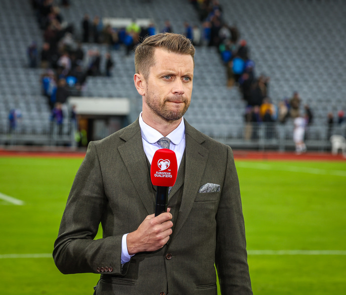 Hann og Kári Árnason voru báðir varnarmenn á sínum ferli. Þeir töluðu um að það vantaði ákveðna týpu af varnarmönnum í þetta lið í dag.