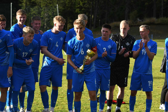 Daði Berg Jónsson og Daníel Tristan Guðjohnsen skoruðu í fyrri hálfleik og íslenska liðið tveimur mörkum yfir í hálfleik. Í seinni hálfleik komu svo þrjú íslensk mörk, Daði skoraði sitt annað mark og þeir Sölvi Stefánsson og Stígur Diljan Þórðarson komu sér einnig á blað.