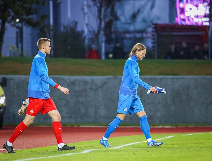 Arnar Þór Viðarsson, landsliðsþjálfari, og Birkir Bjarnason, sem er fyrirliði í þessu verkefni, sátu fyrir svörum á fréttamannafundi í dag og voru spurðir út í þessa umræðu.