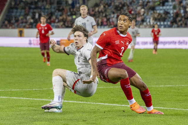 Ísland heimsótti Sviss í undankeppni EM U21 liða í kvöld. Benoný Breki Andrésson fékk frábært tækifæri eftir skelfilegt innkast frá Sviss. Hann komst einn á móti markmanni en lyfti boltanum framhjá markinu.