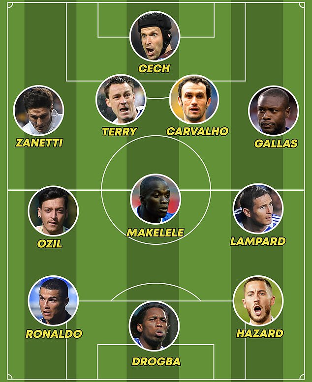 Hinn 57 ára gamli Mourinho valdi átta leikmenn í liðið sem hann þjálfaði hjá Chelsea.