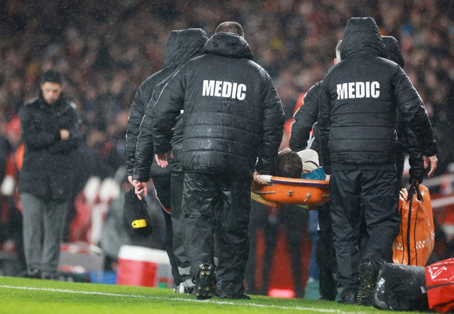 Bradley var borinn af velli eftir meiðslin og yfirgaf Emirates völlinn á hækjum.