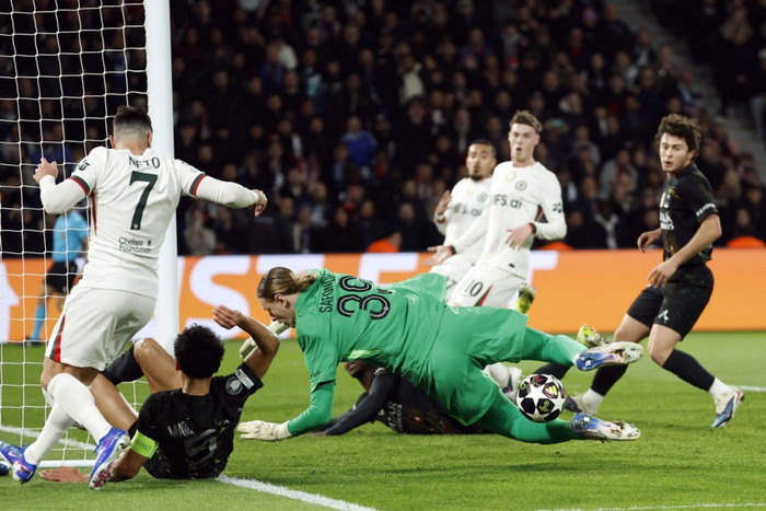 Pedro Neto var einn af bestu leikmönnum í tapliði Chelsea og lá honum mikið á undir lok leiksins þegar PSG var með forystuna. Hann vildi flýta sér að koma boltanum aftur í leik. Boltastrákurinn gerði Neto erfitt fyrir svo portúgalski kantmaðurinn brást við með að ýta honum frá sér og hrifsa boltann af honum.