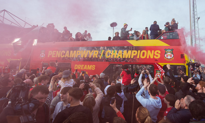 Wrexham vann fimmtu efstu deild enska deildakerfisins í fyrra, National League, til að tryggja sér sæti í næstu deild fyrir ofan, League Two. Núna er Wrexham í toppbaráttu League Two og getur tryggt sér sæti í næstu deild fyrir ofan með sigri í næstu umferð, auk hagstæðra úrslita í öðrum leikjum. Þar mætir Wrexham botnliði Forest Green.