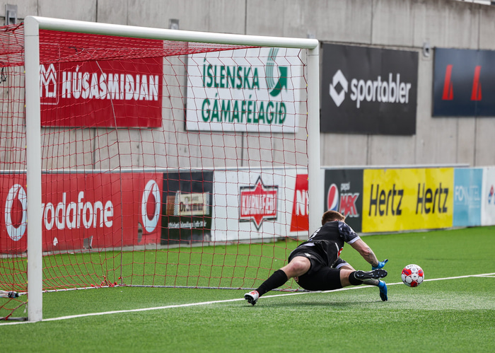 Stuttu síðar fékk Valur einnig vítaspyrnu en Steinþór Már Auðunsson gerði sér lítið fyrir og varði spyrnuna frá Gylfa.