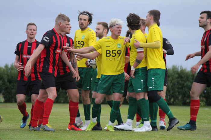 „Ég var á hliðarlínunni og var því ekki í hitanum en það sem strákarnir segja mér og vinir okkar í Skallagrími eru sammála okkur þá varð smá hiti og einhverjar tæklingar. Í kjölfarið snýr leikmaður númer fimmtán í Skallagrími [Atli Steinar Ingason] sér við og segir 'drullastu heim til Namibíu' við Gunnar Jökul Johns, leikmann okkar," sagði Viktor Hugi.