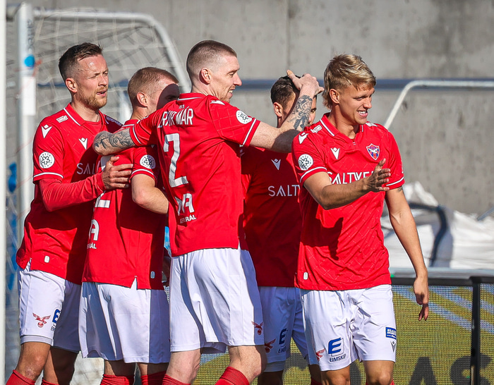 Það var allt brjálað eftir lokaflautið í 2-2 jafntefli Vals gegn Vllaznia í forkeppni Sambandsdeildarinnar í kvöld.