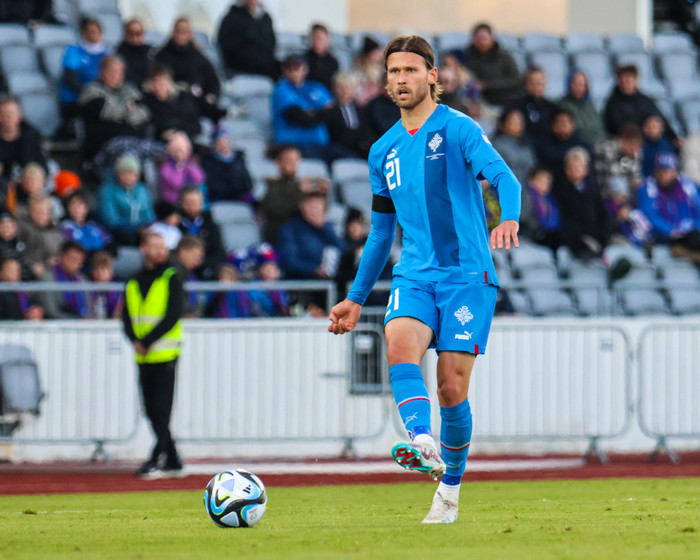Fyrsti byrjunarliðsleikur hans með landsliðinu og hann stóð sig mjög vel. Hefðum alveg mátt koma honum í eitt færi eða svo, en hann vann mikið fyrir liðið og var góður í tengispilinu.