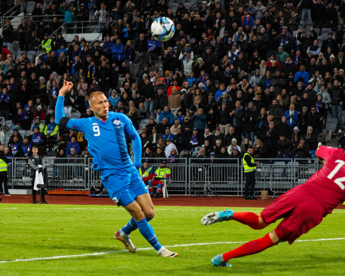 Jón Dagur fékk færi til að koma Íslandi yfir seint í leiknum þegar hann klikkaði á dauðafæri en flaggið fór á loft en hann bætti upp fyrir það með því að leggja upp sigurmarkið á Alfreð.