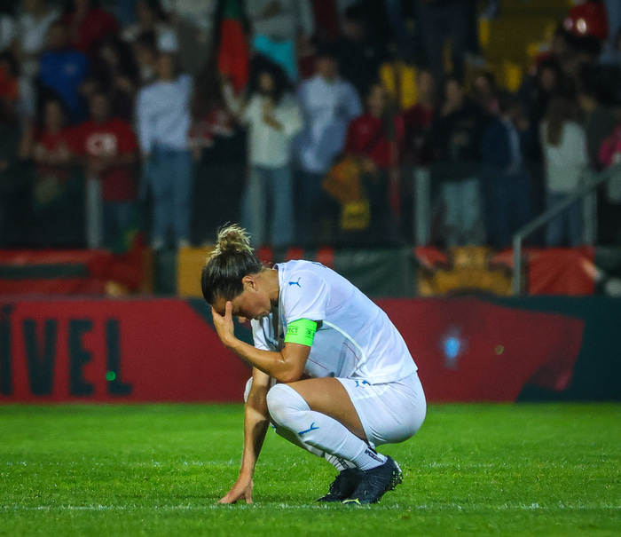 Portúgal komst yfir á 55. mínútu með marki úr víti sem var dæmt á Áslaugu Mundu Gunnlaugsdóttur sem fékk um leið rauða spjaldið.