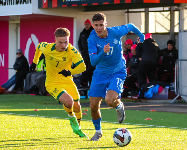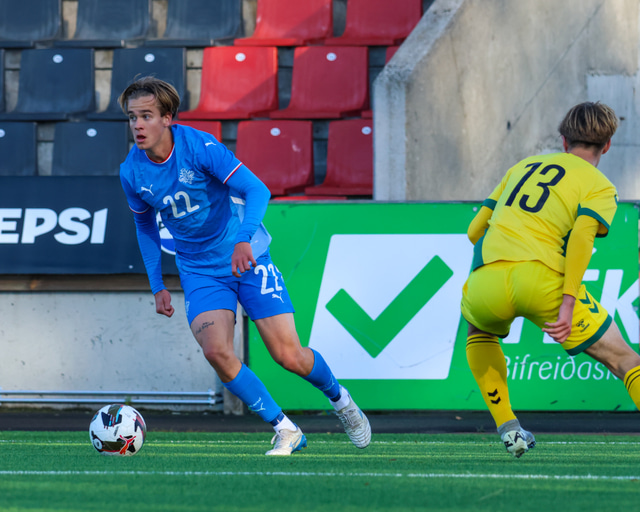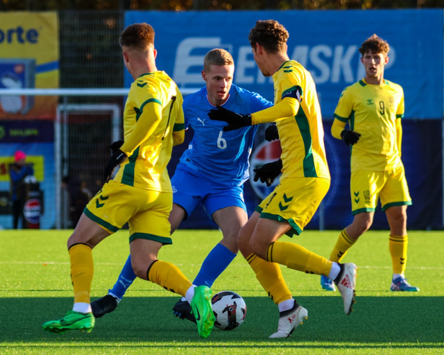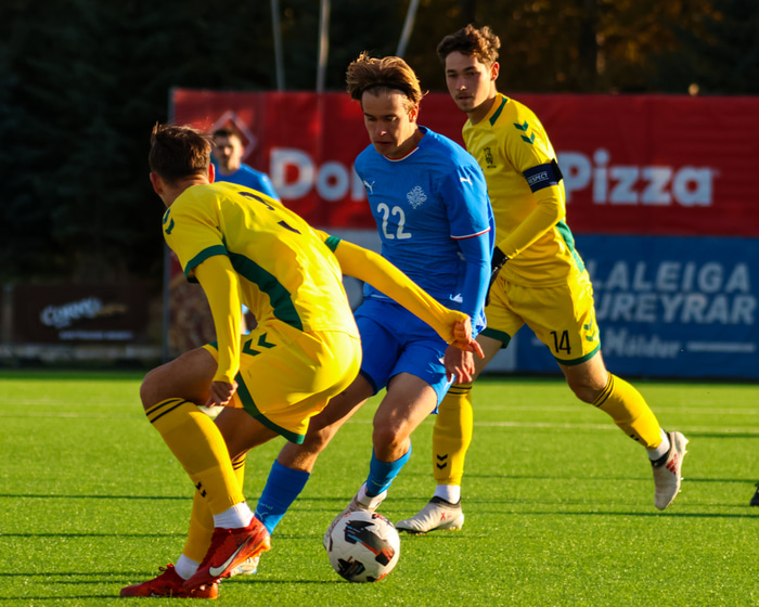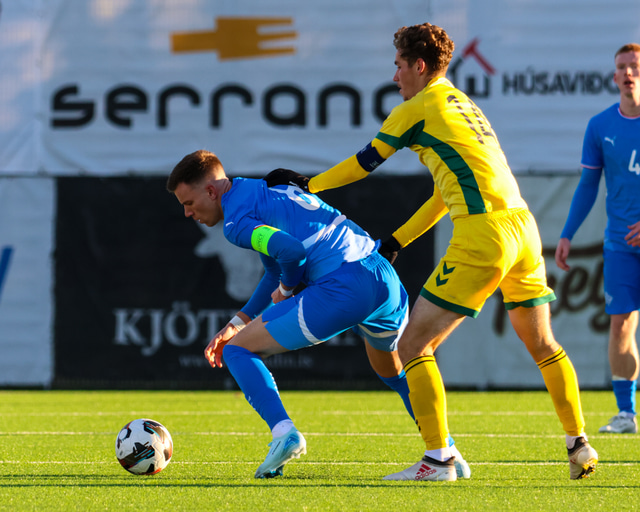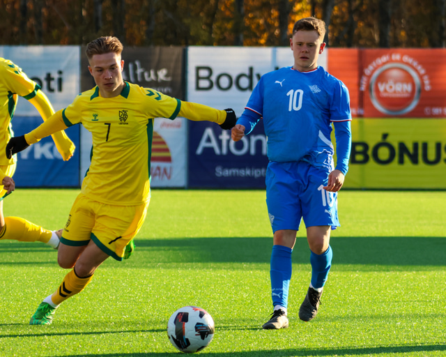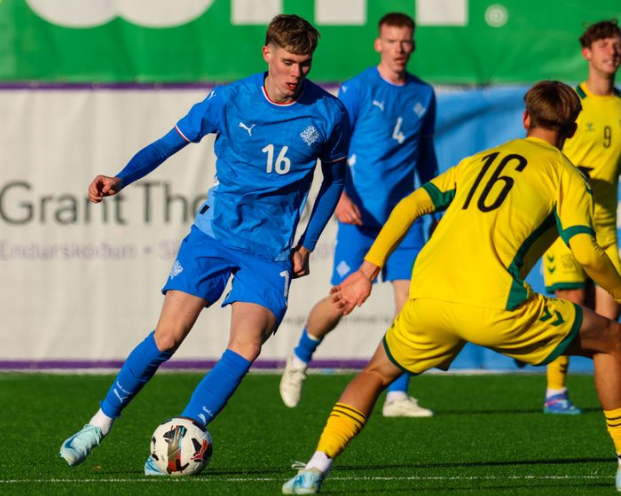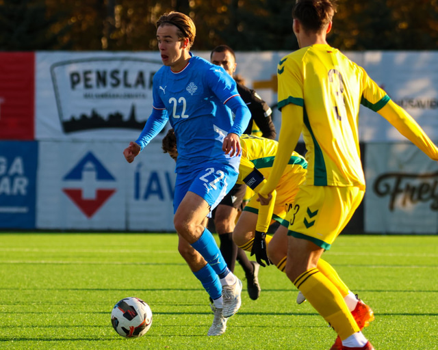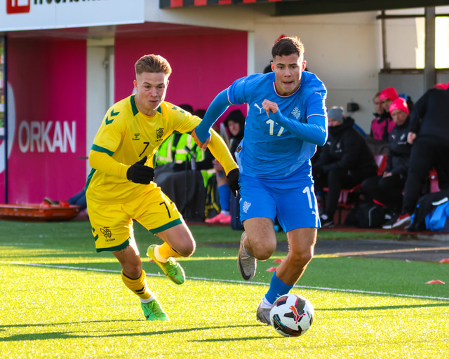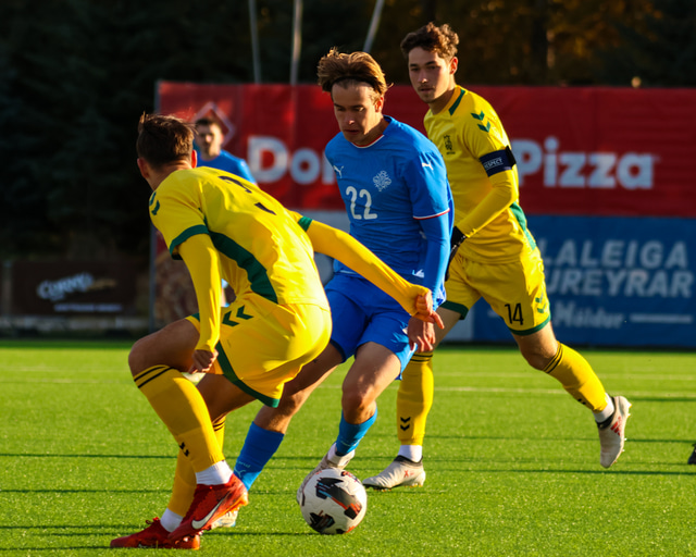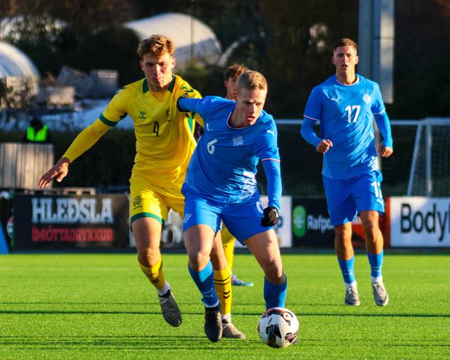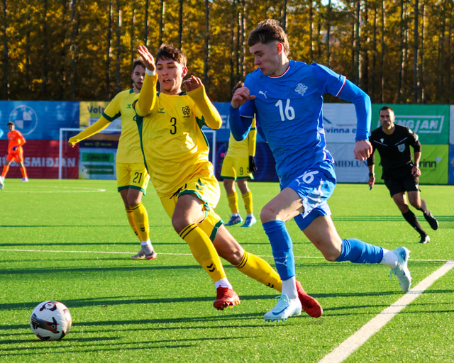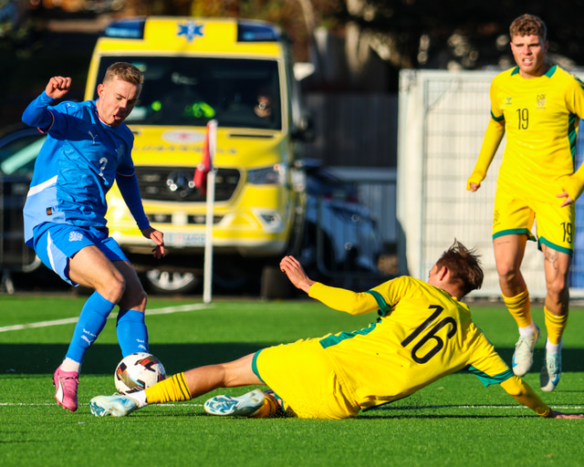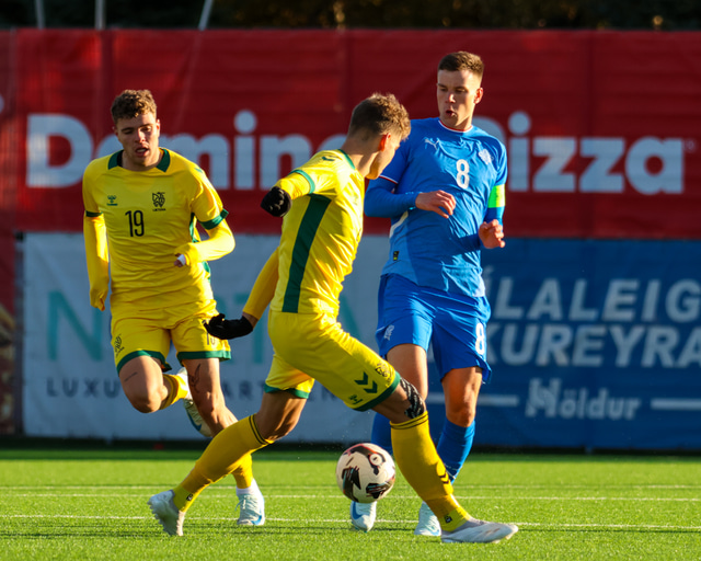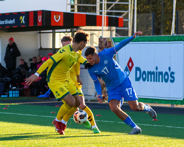 U21 landslið karla olli vonbrigðum í gær þegar liðið tapaði gegn Litháen í undankeppni EM og þar með varð ljóst að liðið á ekki lengur möguleika á sæti á EM. Haukur Gunnarsson tók þessar myndir á leiknum.
