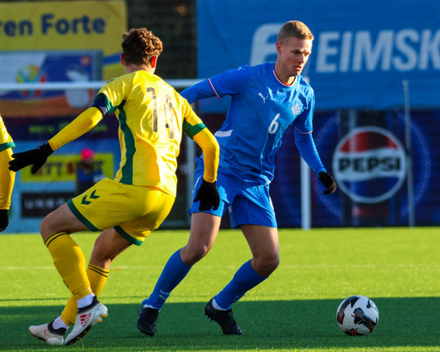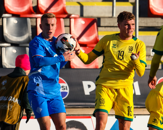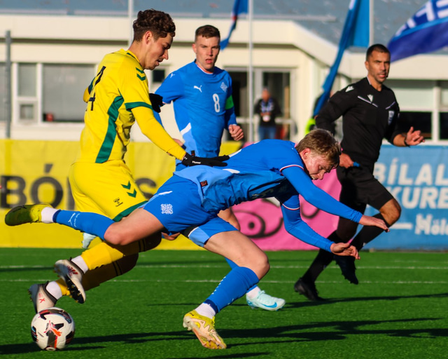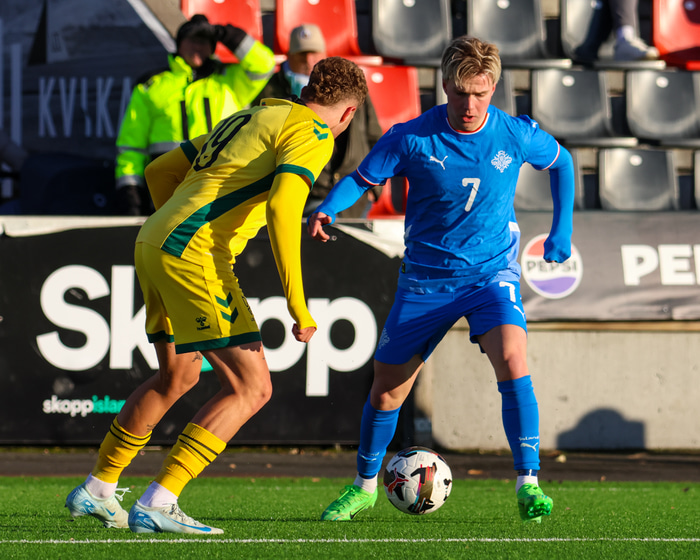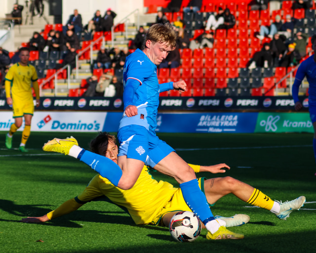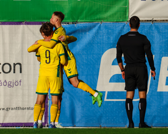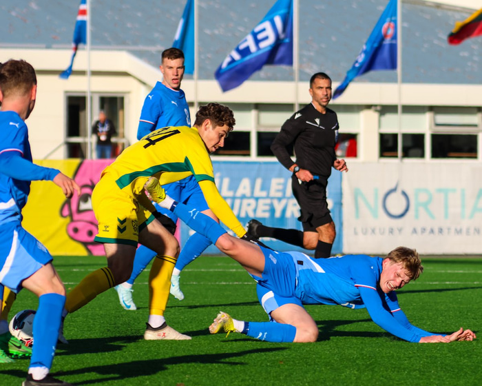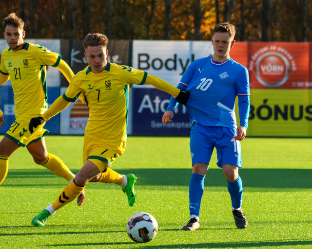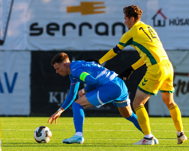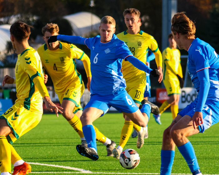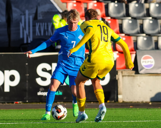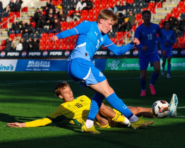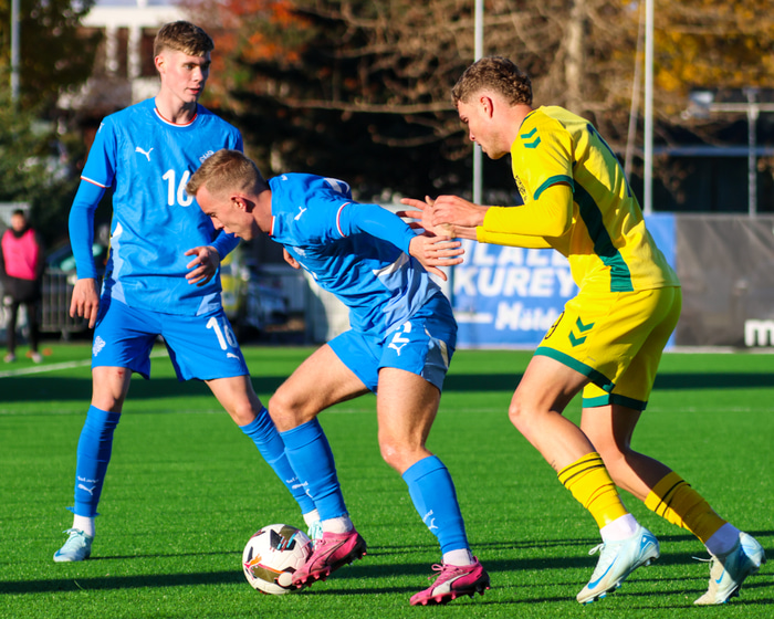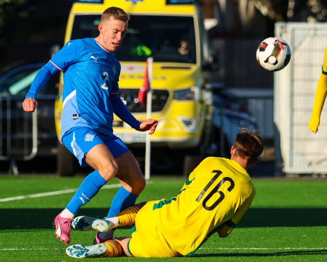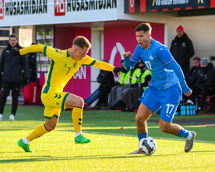 U21 landslið karla olli vonbrigðum í gær þegar liðið tapaði gegn Litháen í undankeppni EM og þar með varð ljóst að liðið á ekki lengur möguleika á sæti á EM. Haukur Gunnarsson tók þessar myndir á leiknum.