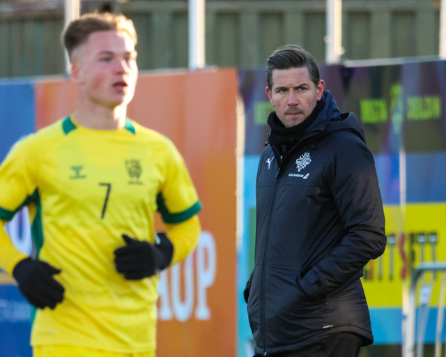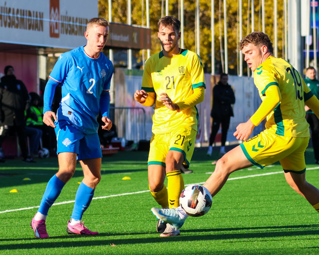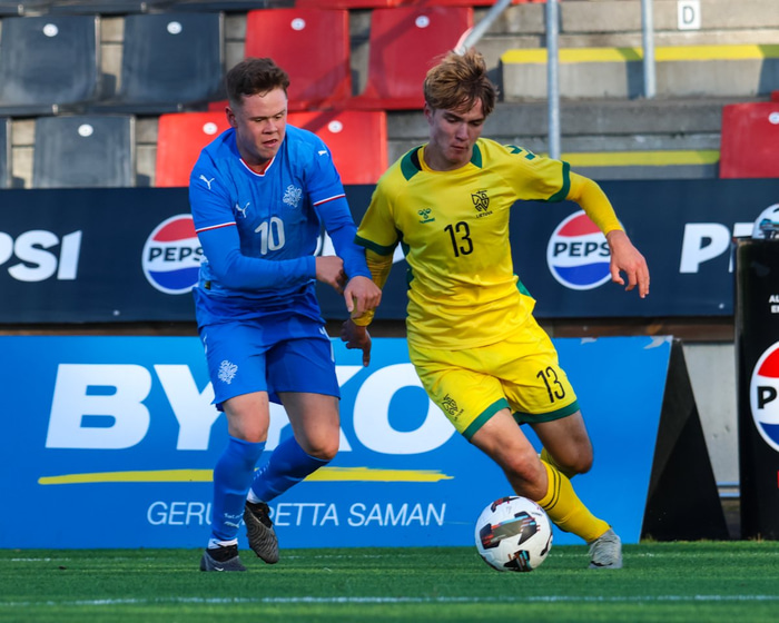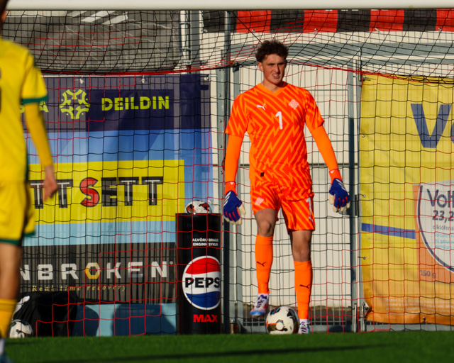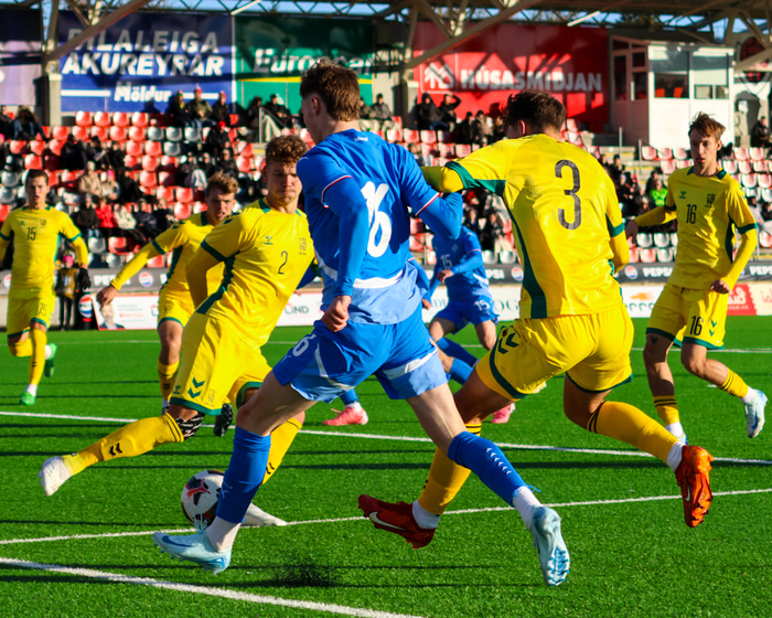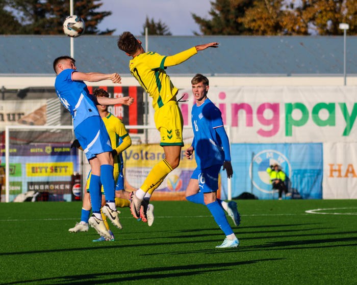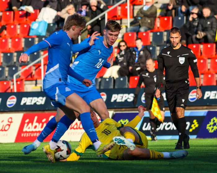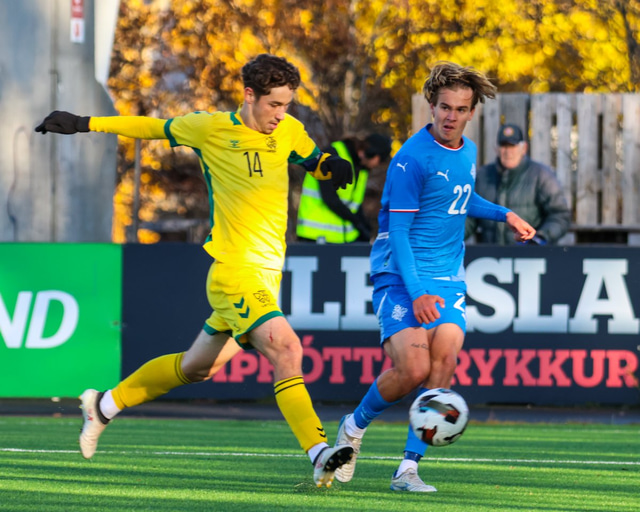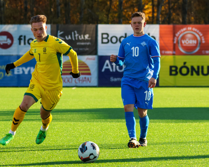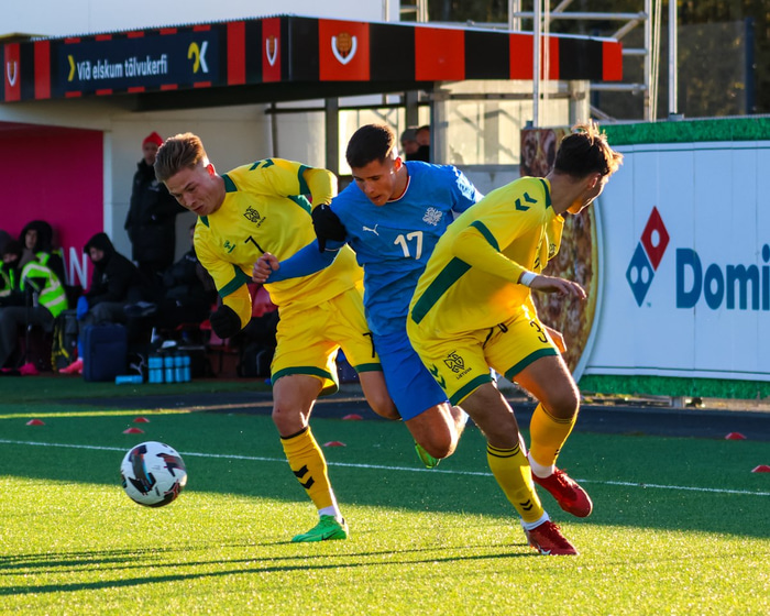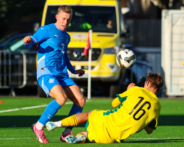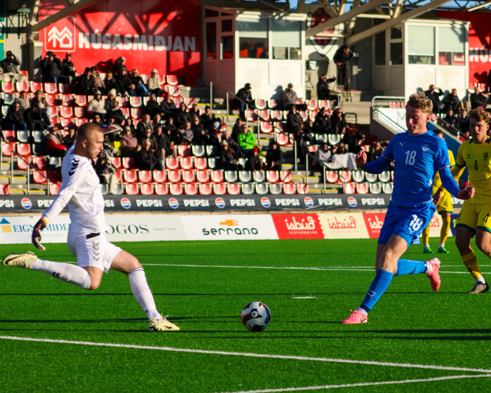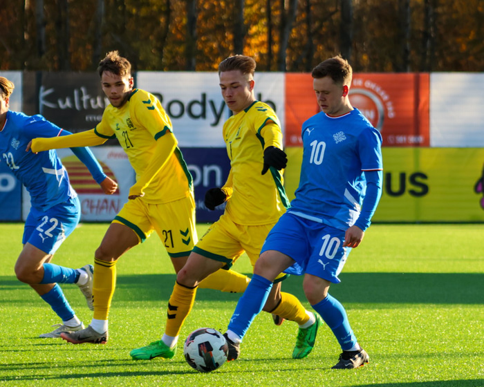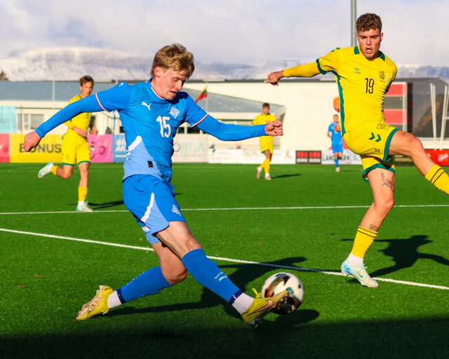 U21 landslið karla olli vonbrigðum í gær þegar liðið tapaði gegn Litháen í undankeppni EM og þar með varð ljóst að liðið á ekki lengur möguleika á sæti á EM. Haukur Gunnarsson tók þessar myndir á leiknum.