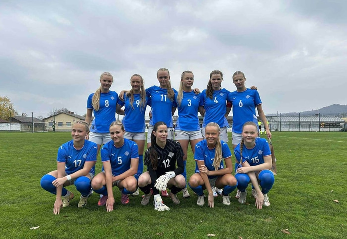 Íslenska stúlknalandsliðið skipað leikmönnum 17 ára og yngri mætir Slóveníu í fyrri umferð í undankeppni Evrópumótsins í dag.