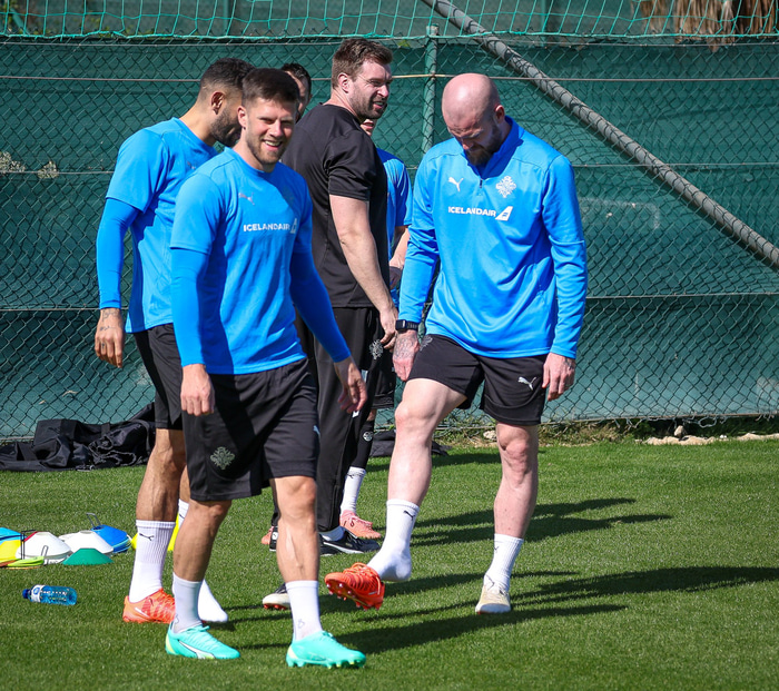 „Fyrsti landsleikurinn var gegn Aserbaísjan og hvort sá hundraðasti komi gegn þeim líka verður bara að koma í ljós. Það eru örugglega ekki margir sem hafa spilað sinn fyrsta og hundraðasta gegn sömu þjóð. Við erum bara komnir hingað til að ná í þrjá punkta í fyrsta leik. Það er það sem skiptir máli. Þessi hundraðasti landsleikur kemur þegar hann kemur. Aðalmálið er að komast í umspilið og reyna að upplifa það aftur að komast á stórmót."