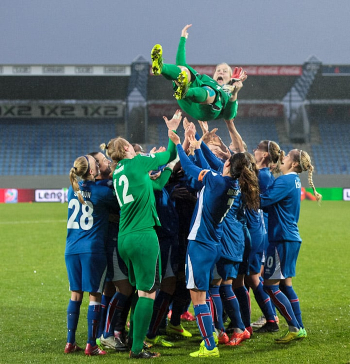 Ísland vann þá 9-1 sigur þar sem Harpa Þorsteinsdóttir (2), Dagný Brynjarsdóttir (2), Rakel Hönnudóttir (2), Glódís Perla Viggósdóttir, og Arna Sif Ásgrímsdóttir skoruðu.