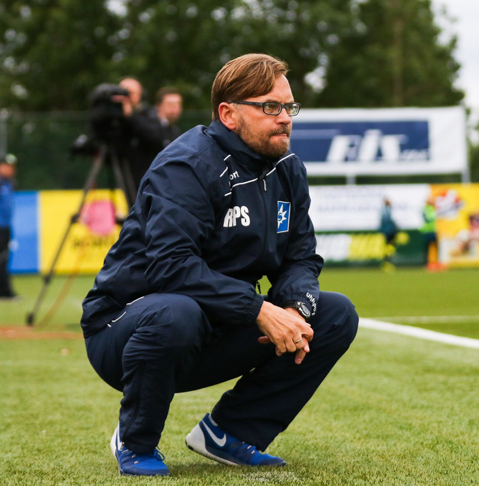 „Eins og staðan er núna erum við mjög ánægðir með hópinn okkar. Þetta er þéttur hópur og góðir karakterar. Við erum ekki að leita að neinu sérstöku. Við gætum styrkt okkur eitthvað varnarlega en við sjáum til hvernig það fer. Við erum ekkert að stressa okkur. Við erum fínir framarlega og á miðjunni en varnarlega þyrftum við kannski að doubla einhverjar stöður til að fá meiri samkeppni."