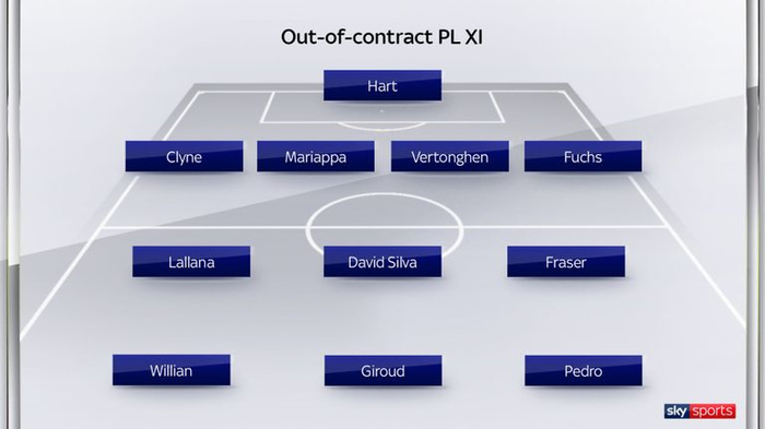 Sky Sports birti í dag úrvalslið leikmanna í ensku úrvalsdeildinni sem verða samningslausir í sumar.