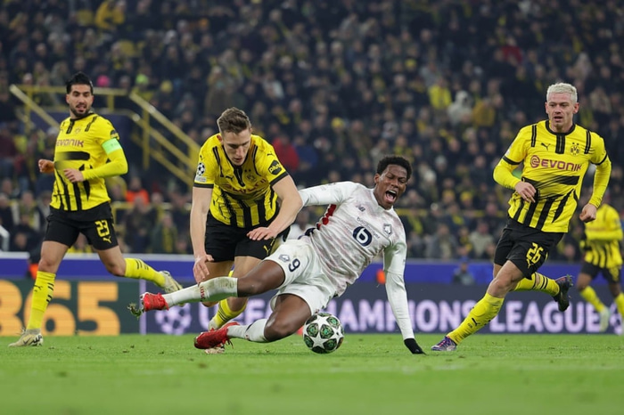Jonathan David kom liðinu yfir eftir aðeins fimm mínútna leik en Gregor Kobel, markvörður Dortmund, mun naga sig í handabökin eftir að hafa fengið klaufalegt mark á sig.